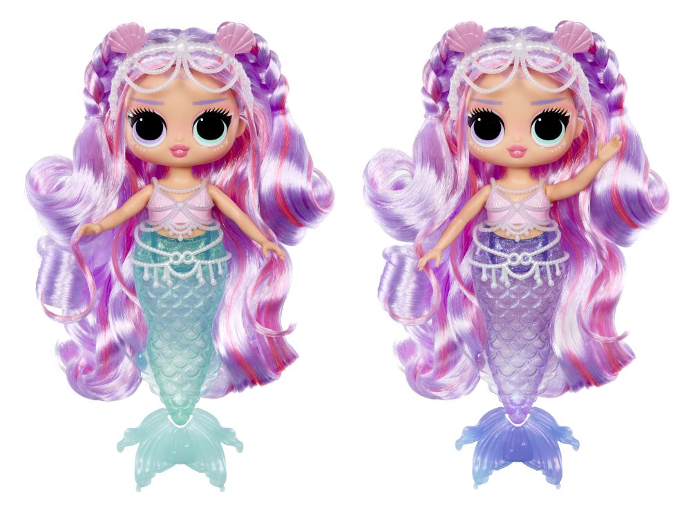 Představujeme 4 nové L.O.L. Surprise! Tweens rošťácké panenky, které se přeměnily na mořské panny s nádherně barevnou ploutví, která mění barvu, když..