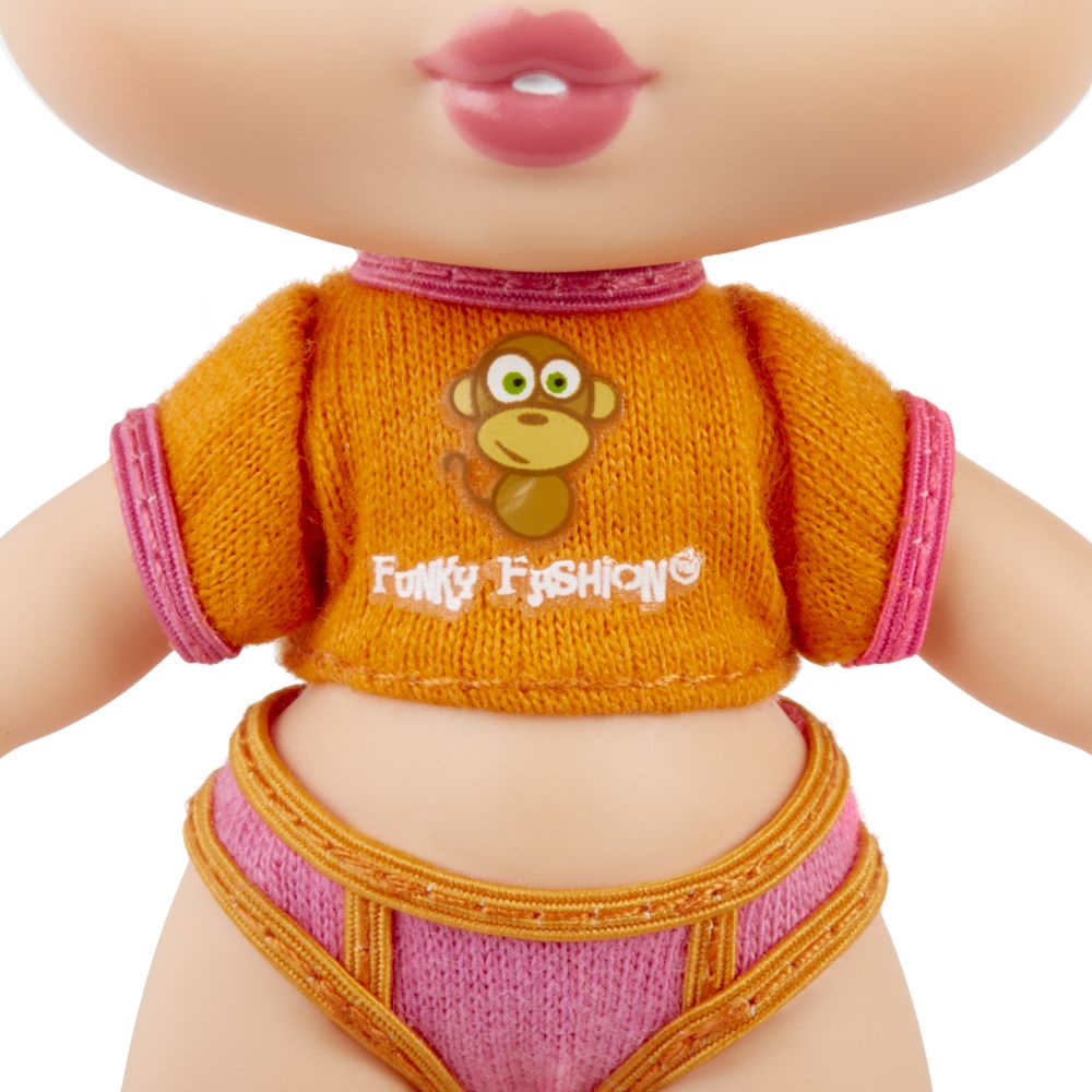 Rozkošná miminka vás přenesou zpět v čase, kdy vášeň pro Bratz módu teprve začínala. Miminka je možné posadit do různých poloh,a mají na sobě látkový outfit a několik originálních doplňků.