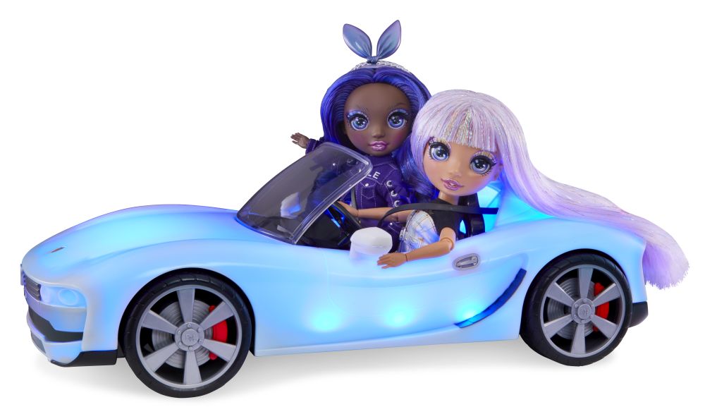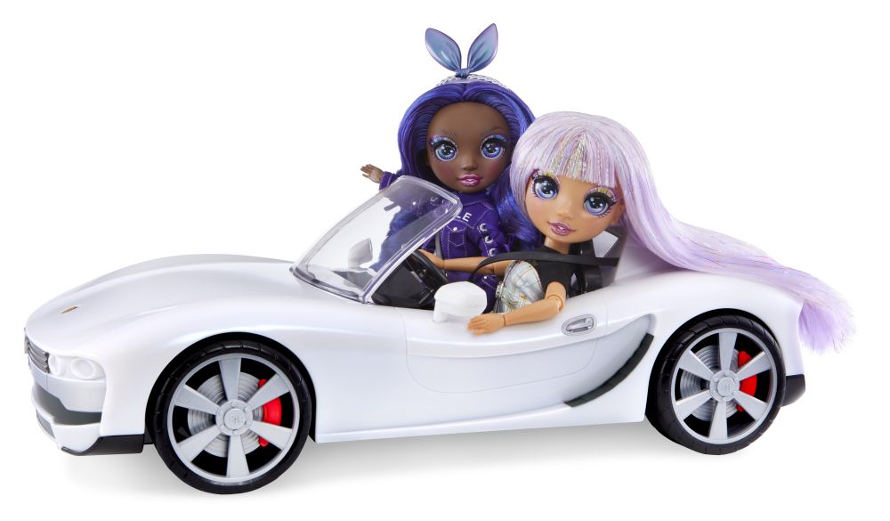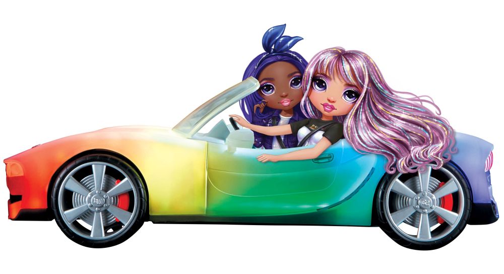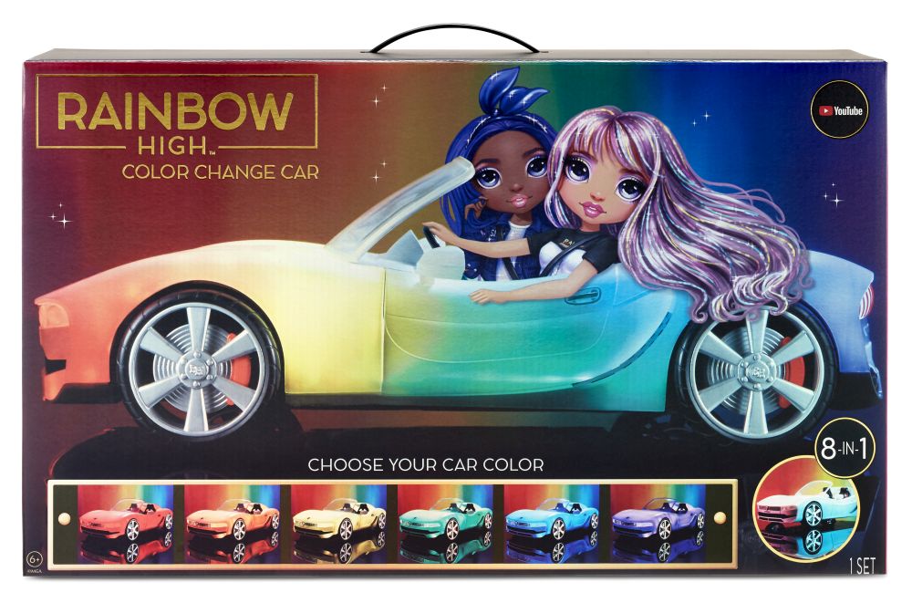 Vyrazte ve velkém stylu na výlet nebo do školy novým Rainbow High Duhovým autem. Proč se spokojit s jednobarevným autem, když můžete mít duhové? Stačí stisknout tlačítko pro výběr barvy vozu. Začínáte bílou a pak si můžete vybrat červenou, oranžovou, žlutou, zelenou, modrou nebo fialovou.