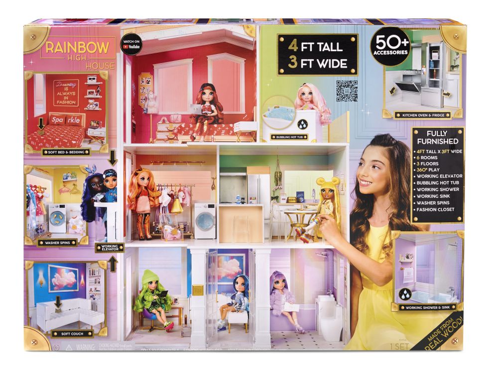 Na této luxusní Studentské koleji bydlí s radostí každá panenka, která má to štěstí, že se dostala do pohádkového domu Rainbow High. Tento 1,2 metru vysoký dům má výtah, koupelnu se sprchou a umyvadlem, vířivku a pračku. Najdete v něm i nepostradatelné příslušenství všech studentů, jako jsou notebooky, palety na líčení, ale i nádobí atp.