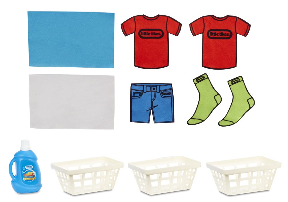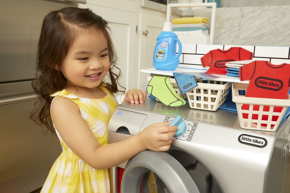 Little Tikes Moje první pračka je interaktivní hračka navržená tak, aby vypadala jako skutečný spotřebič, takže děti mohou předstírat, že perou prádlo stejně jako jejich rodiče.