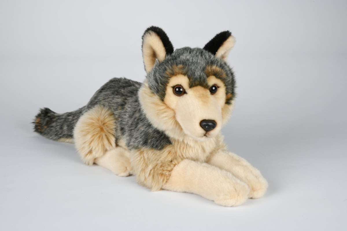 Plyšový vlk o velikosti cca 40 x 20 x 11 cm. Věk 0+..
