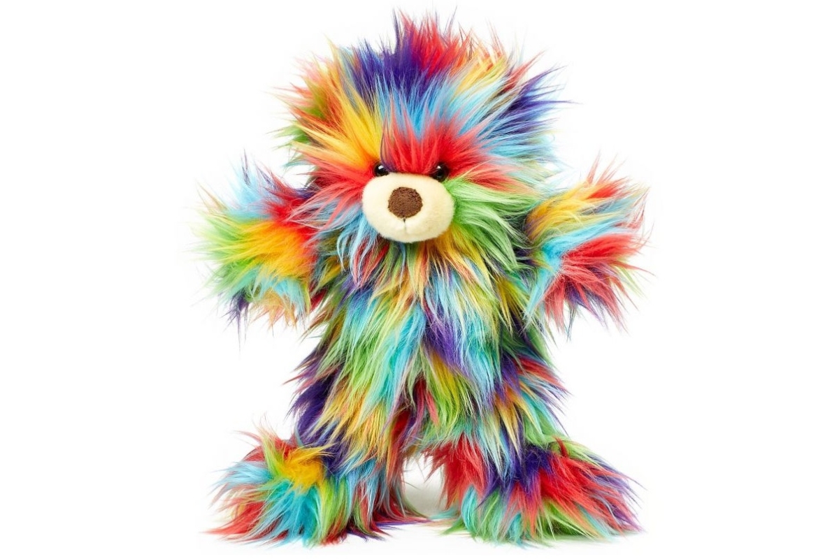 Plyšový barevný medvěd o rozměrech 23x20x8 cm. Věk 0+..