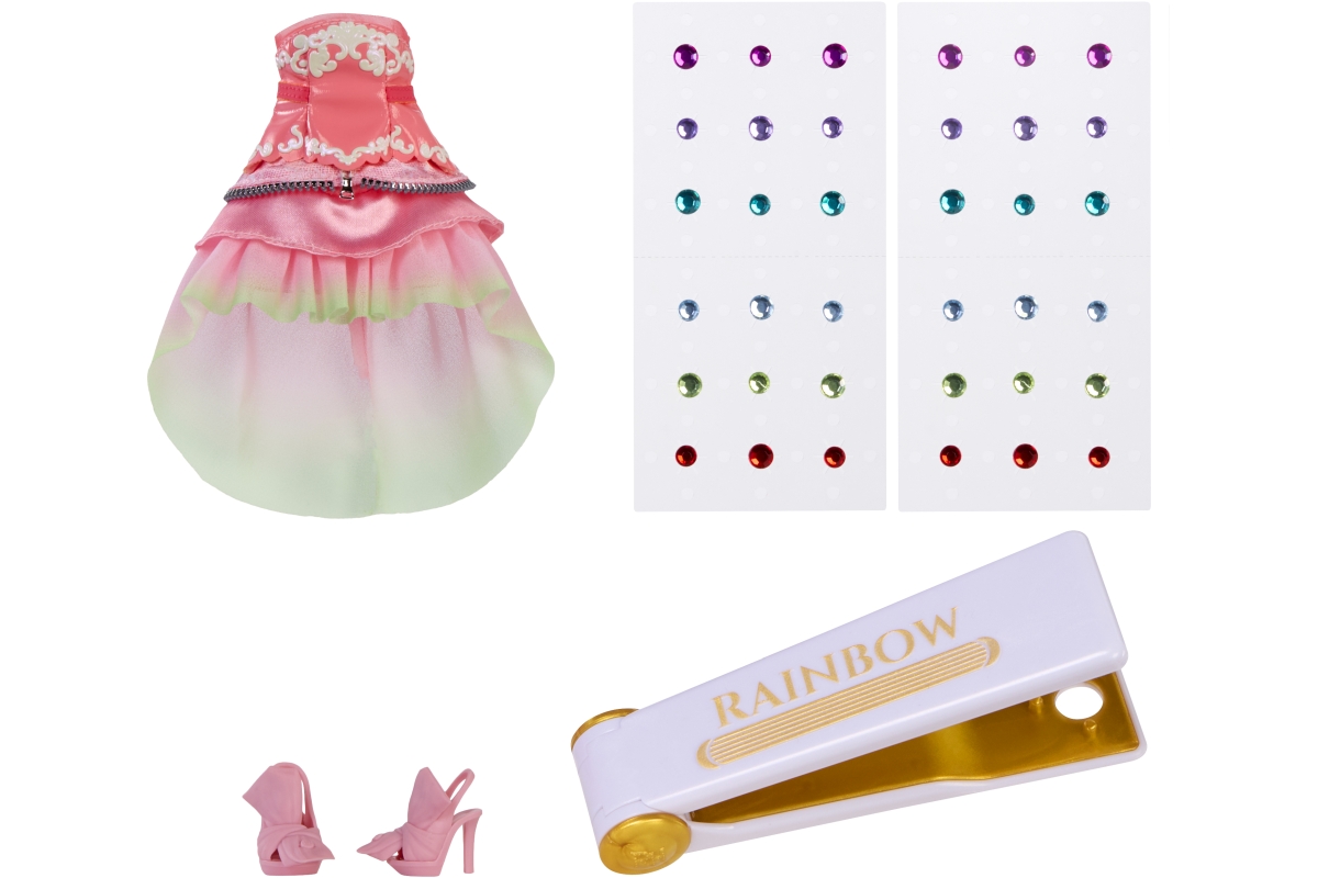 Rainbow High řada módních panenek se rozšiřuje o nové postavy. Každá panenka přináší unikátní barvy a módní styl inspirovaný všemi odstíny duhy, které odrážejí různé osobnosti a podporují sebevyjádření a kreativitu. Součástí balení jsou krystalové duhové třpytky, se kterými můžeš ozdobit vlasy i oblečení panenek – a klidně je vyzkoušet i na sobě. Pomocí krimpovacího nástroje Rainbow High snadno aplikuješ třpytivé krystaly a proměníš každý účes i outfit v oslnivé duhové dílo. Obsah balení:1 panenka s pohyblivými klouby a dlouhými česatelnými vlásky, 1 outfit, duhové kamínky a krimpovací nástroj pro jejich upevnění na vlasy nebo outfit. Doporučený věk 4+