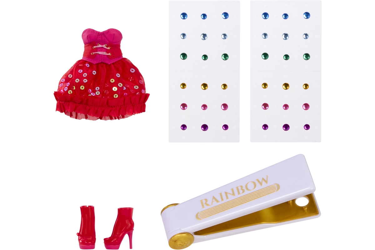 Rainbow High řada módních panenek se rozšiřuje o nové postavy. Každá panenka přináší unikátní barvy a módní styl inspirovaný všemi odstíny duhy, které odrážejí různé osobnosti a podporují sebevyjádření a kreativitu. Součástí balení jsou krystalové duhové třpytky, se kterými můžeš ozdobit vlasy i oblečení panenek – a klidně je vyzkoušet i na sobě. Pomocí krimpovacího nástroje Rainbow High snadno aplikuješ třpytivé krystaly a proměníš každý účes i outfit v oslnivé duhové dílo. Obsah balení:1 panenka s pohyblivými klouby a dlouhými česatelnými vlásky, 1 outfit, duhové kamínky a krimpovací nástroj pro jejich upevnění na vlasy nebo outfit. Doporučený věk 4+