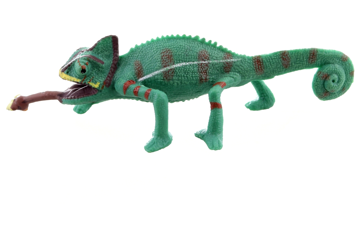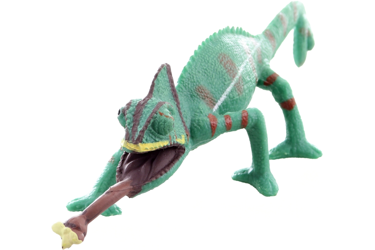 Plastový chameleon o rozměrech 12x3x3,5 cm. Baleno v sáčku. Věk 3+..