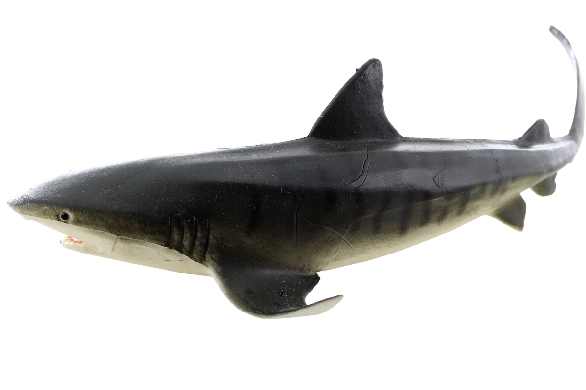 Plastový žralok tygří o rozměrech 16x4x7 cm. Baleno v sáčku. Věk 3+..