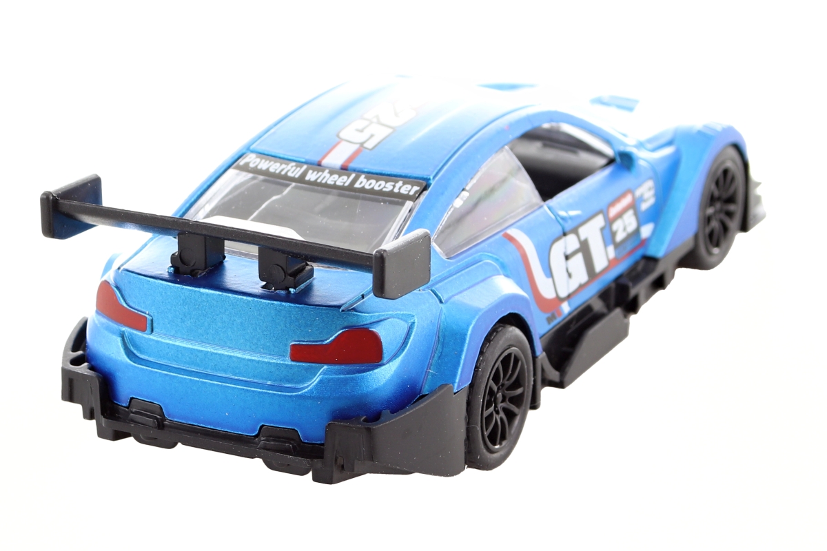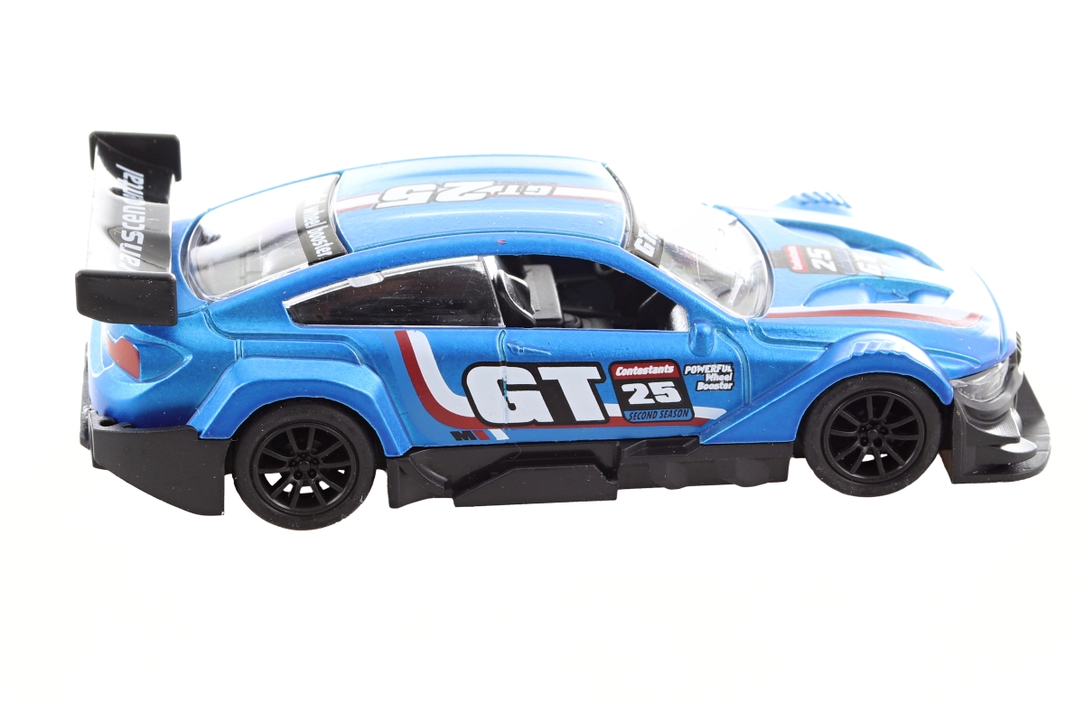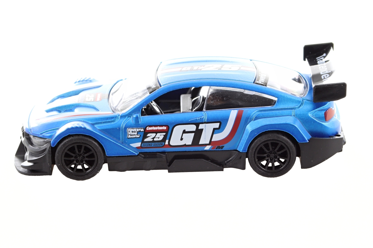 Kovový model sportovního auta na zpětný chod. Rozměry auta cca 10x4x3 cm. Rozměry balení cca 15x8x6 cm. Věk 3+..