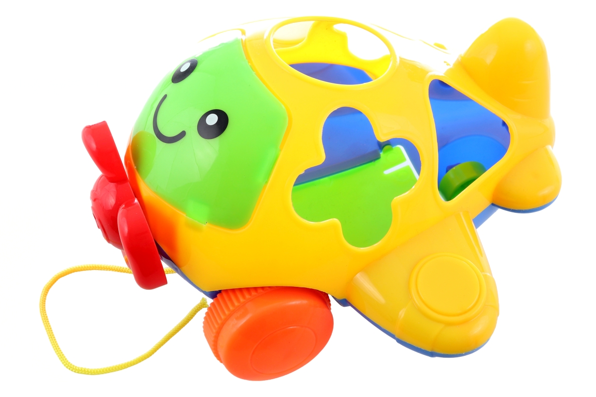 Vkládačka s motivem veselého letadla. Materiál plast. Součástí balení 5 kostiček různých tvarů. Rozměry letadla 20x11x20 cm. Baleno v síťce. Věk 3+..