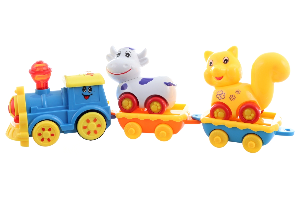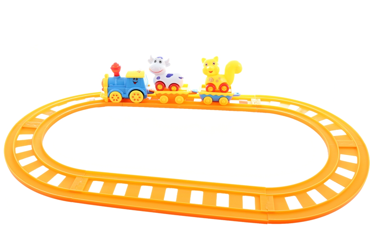 Baby vlaková sada. Napájení lokomotivy na 3xAA baterie - nejsou součástí balení. Materiál plast. Rozměry balení 40x33x8 cm. Věk 3+..