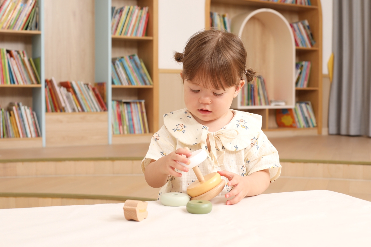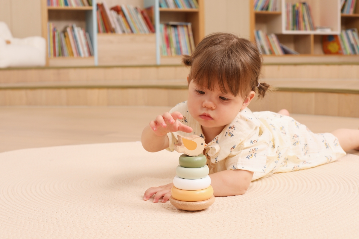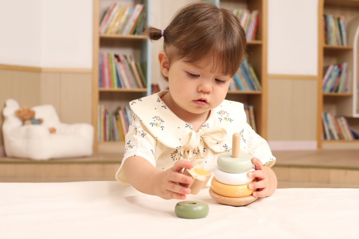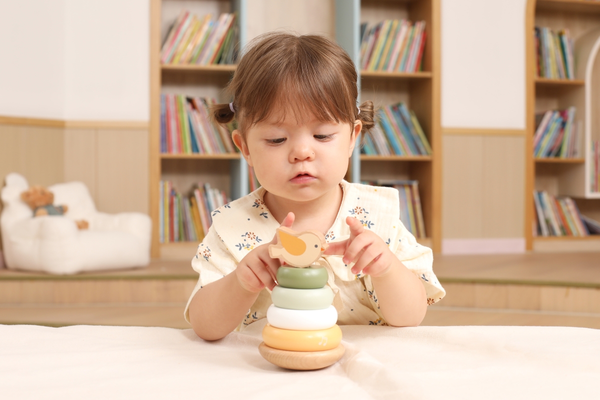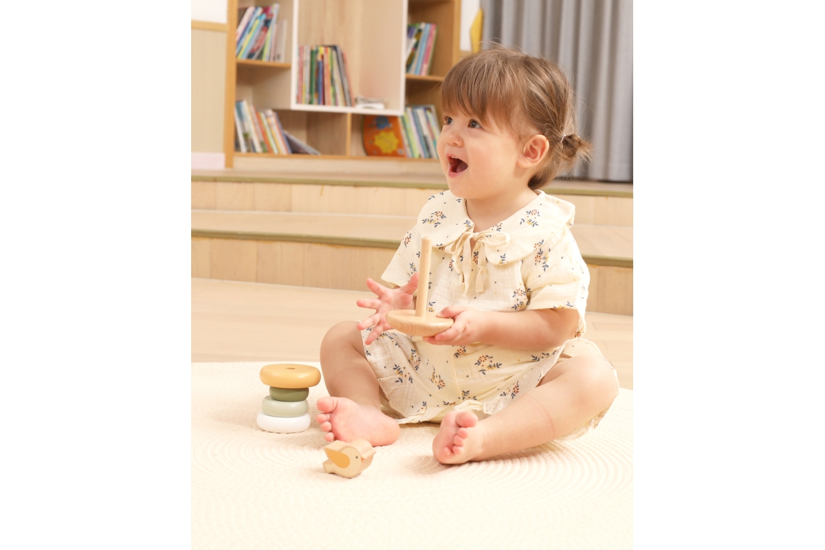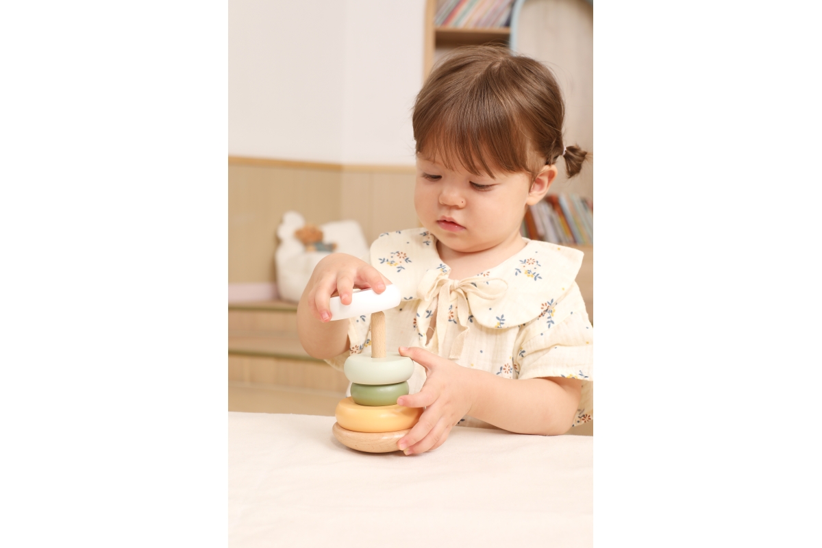 Dřevěná pyramida s ptáčkem. Rozměry pyramidy 8,2x8,2x13,5 cm. Rozměry balení 13x9x18 cm. Baleno v krabici. Věk 12m+..