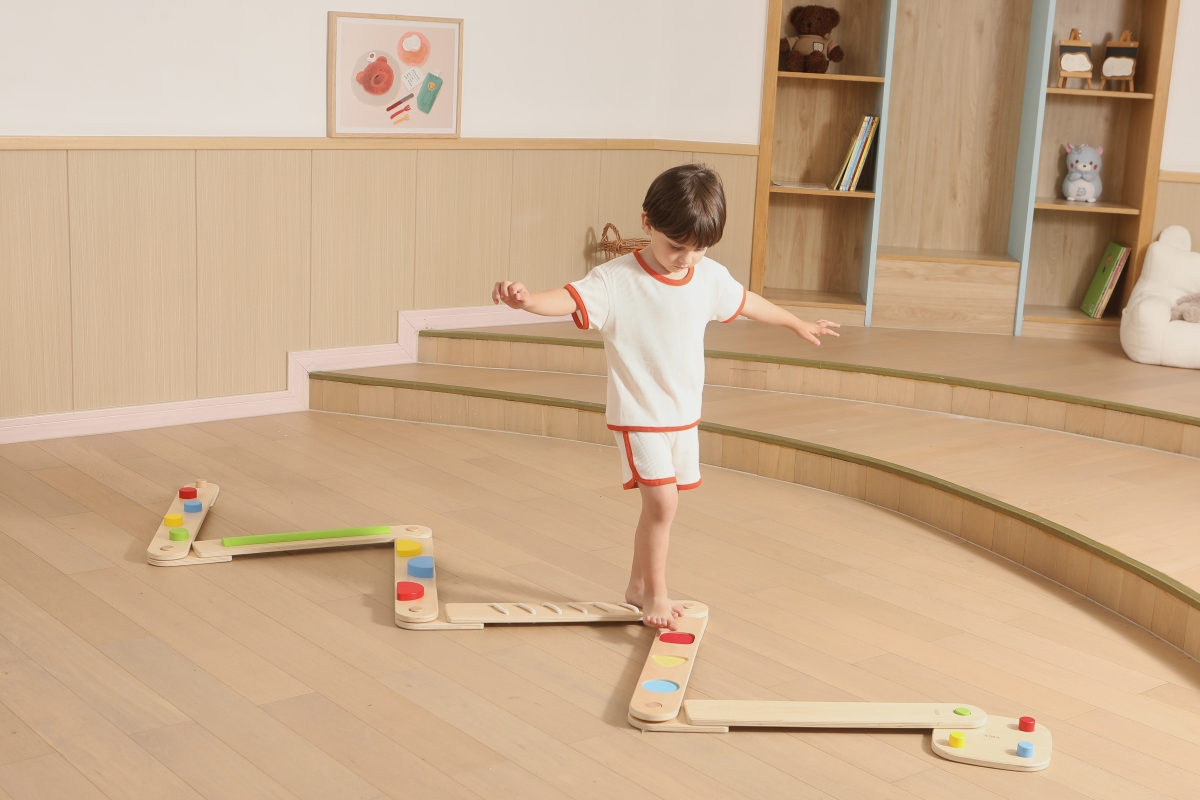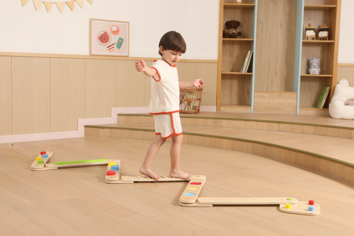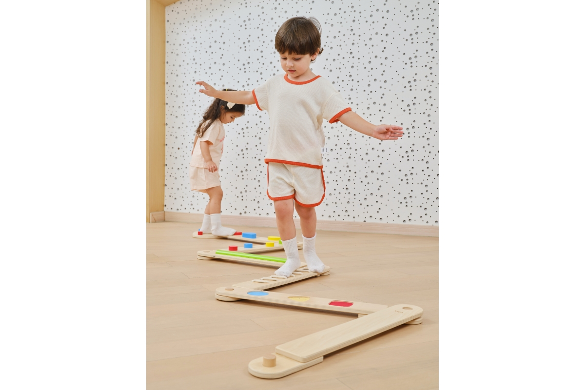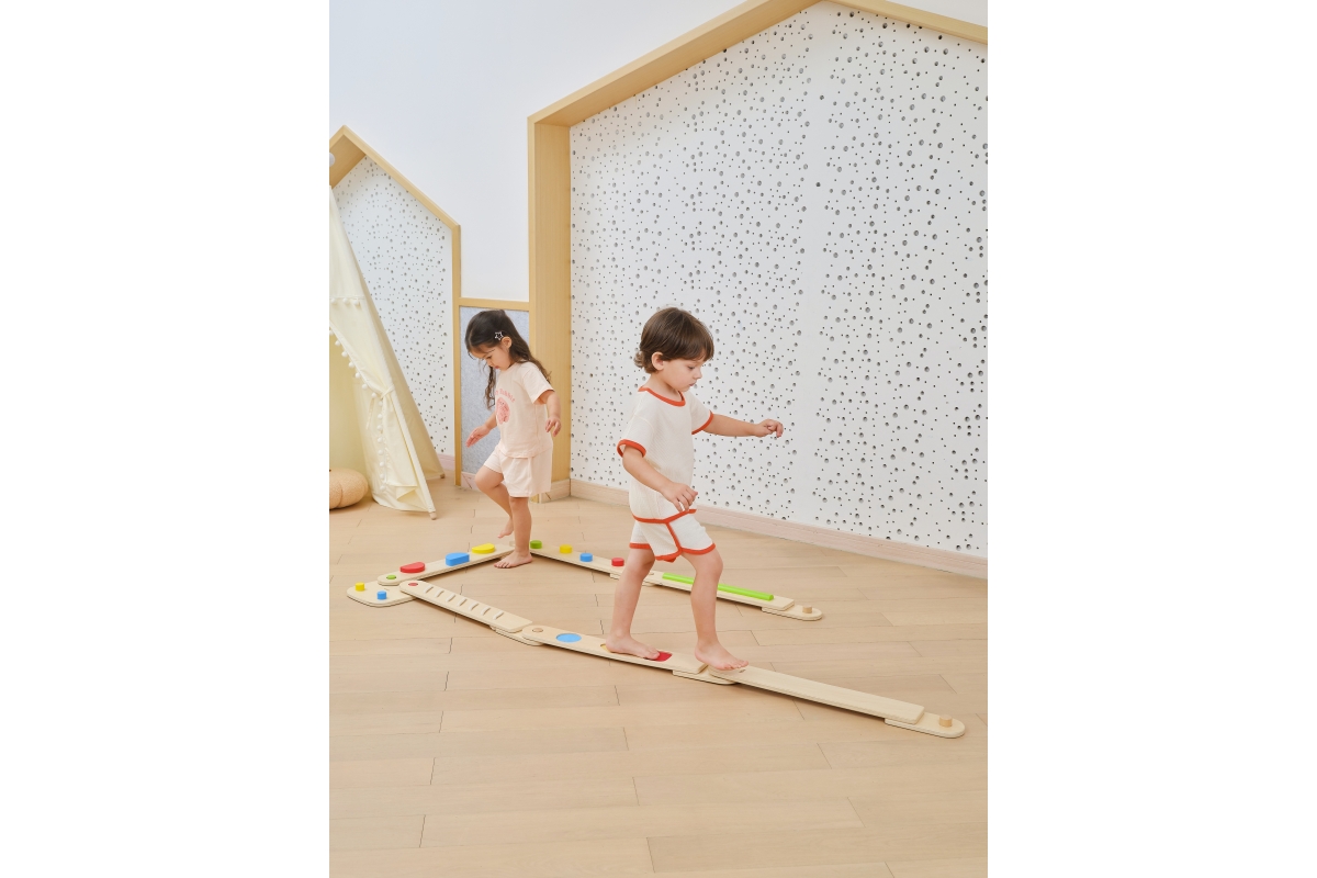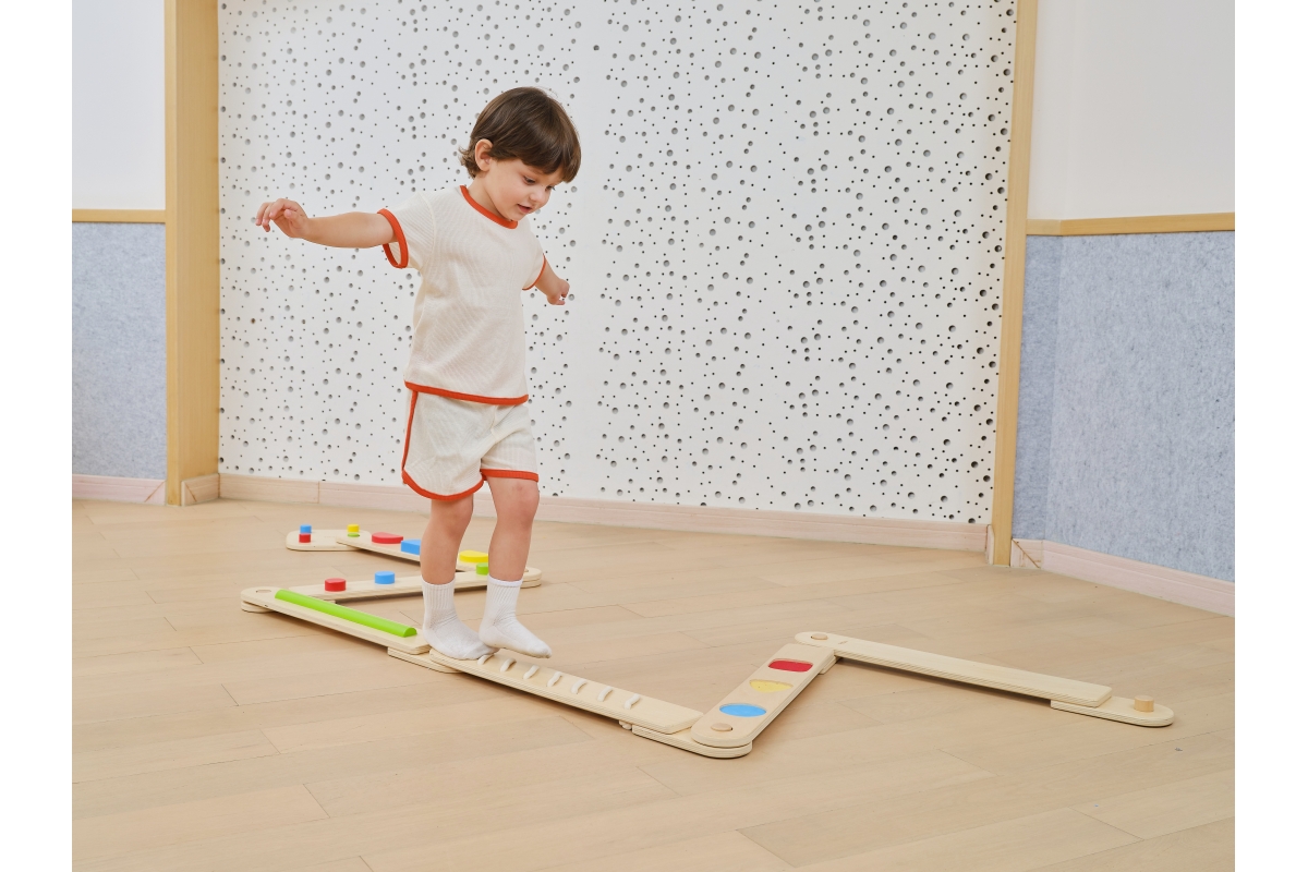 Dřevěná balancující cesta - děti si mohou kombinovat různé druhy desek a navrhovat si vlastní vyvažovací cesty, od jednoduchých procházek až po náročn..