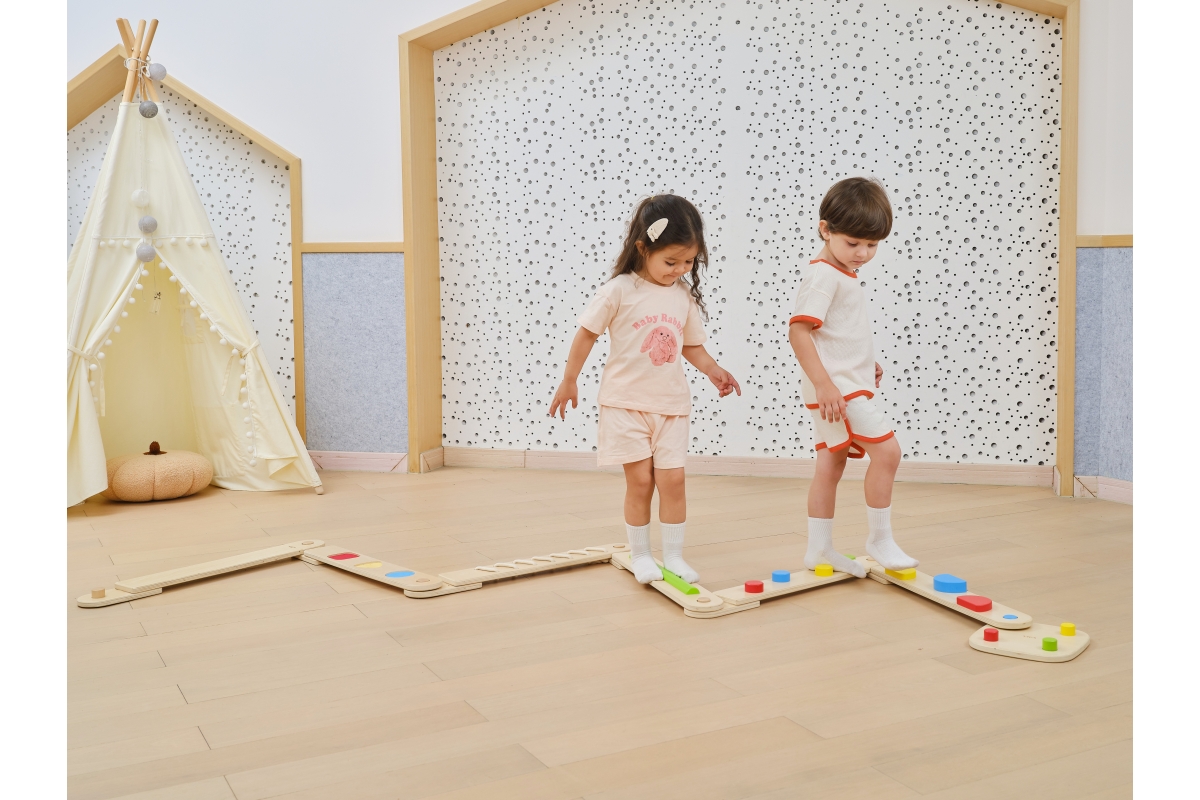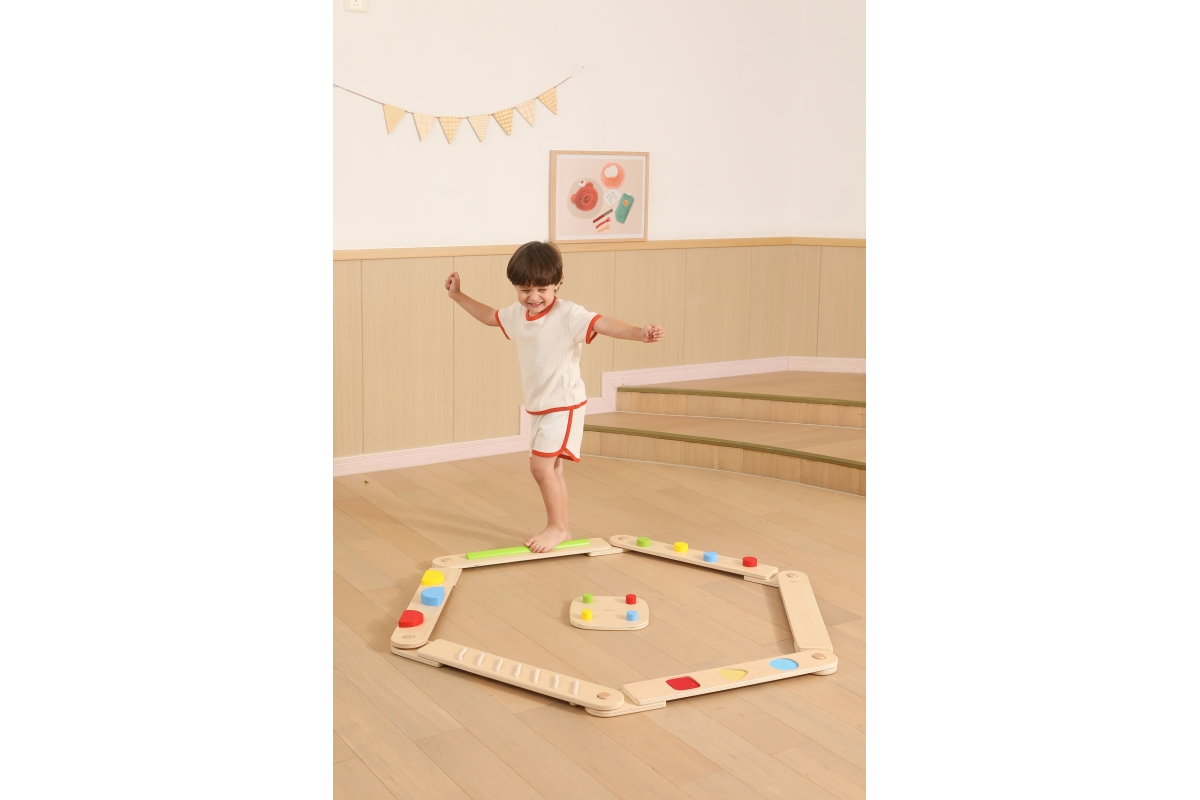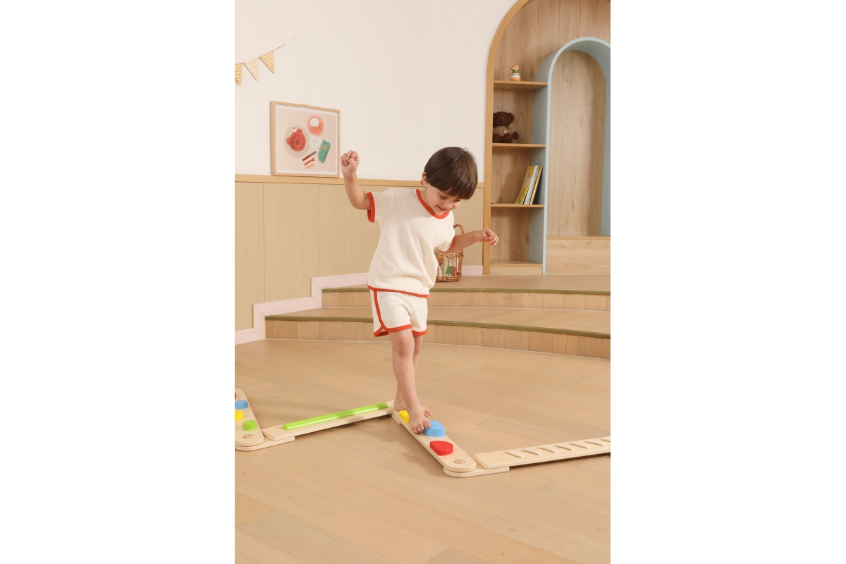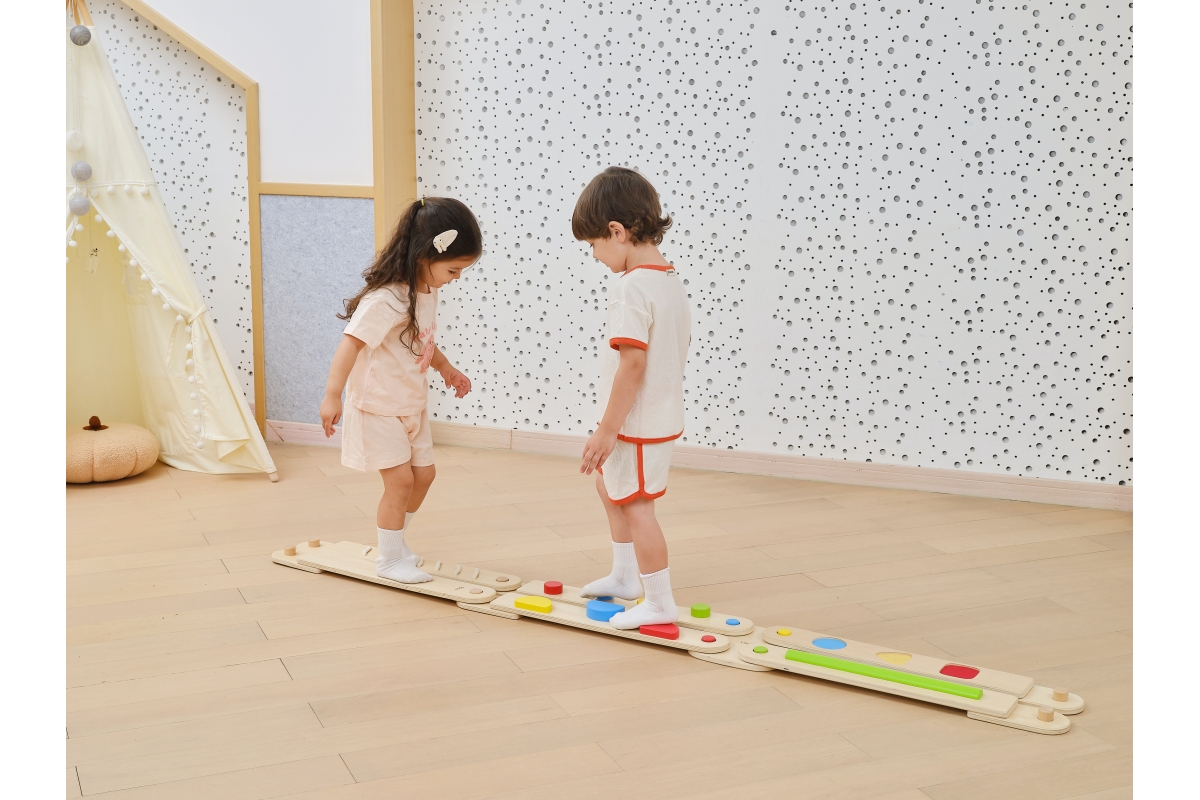 Dřevěná balancující cesta - děti si mohou kombinovat různé druhy desek a navrhovat si vlastní vyvažovací cesty, od jednoduchých procházek až po náročné stezky, čímž si posílí koordinaci, kreativitu a sebevědomí.Balení obsahuje desek o rozměru 70x9,5 cm a čtverec o rozměru 22,5x22,5 cm. Baleno v krabici. Rozměry balení 72x30x12 cm. Věk 24m+