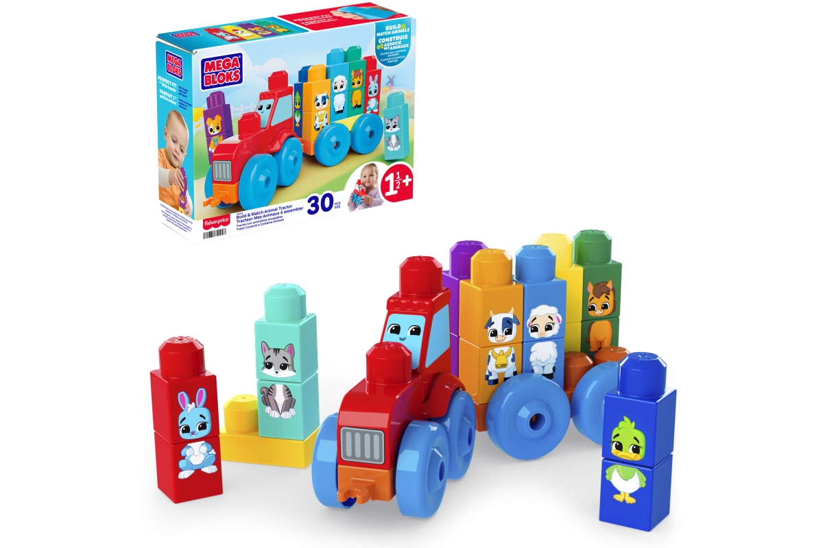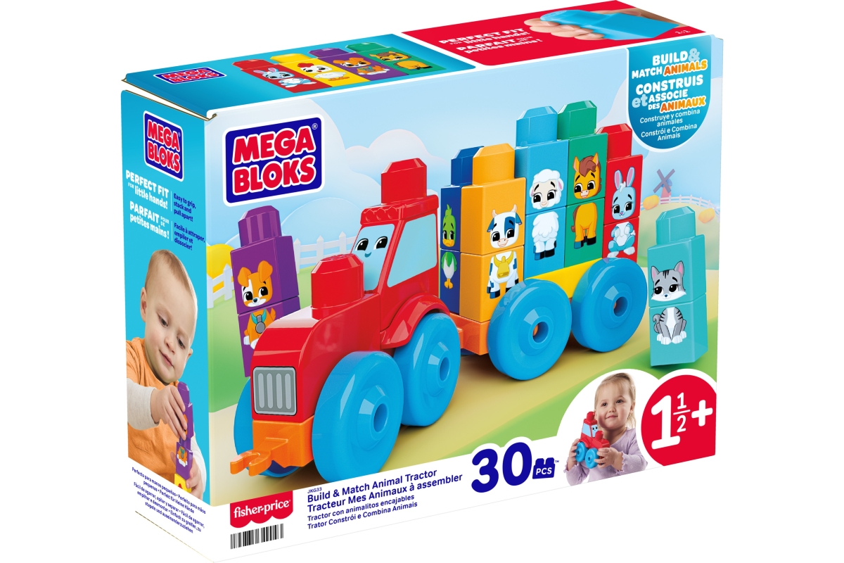 Seznamte své malé děti se světem barev, tvarů a zvířátek díky traktoru se zvířátky od Mega Bloks! Tato stavitelská sada pro nejmenší obsahuje 30 dílků včetně 2 podvozků s kolečky a velkých kostek pro skládání a párování 8 různých hospodářských zvířátek. Děti mohou kombinovat jednotlivé díly a vytvářet zcela nová zvířátka podle vlastní fantazie. Skvělá hra na rozvoj jemné motoriky a kreativity. Lze kombinovat s dalšími stavebnicemi Mega Bloks pro ještě více zábavy. Každá stavebnice se prodává zvlášť v závislosti na dostupnosti. Barvy a vzhled výrobku se mohou lišit. Věk 18m+