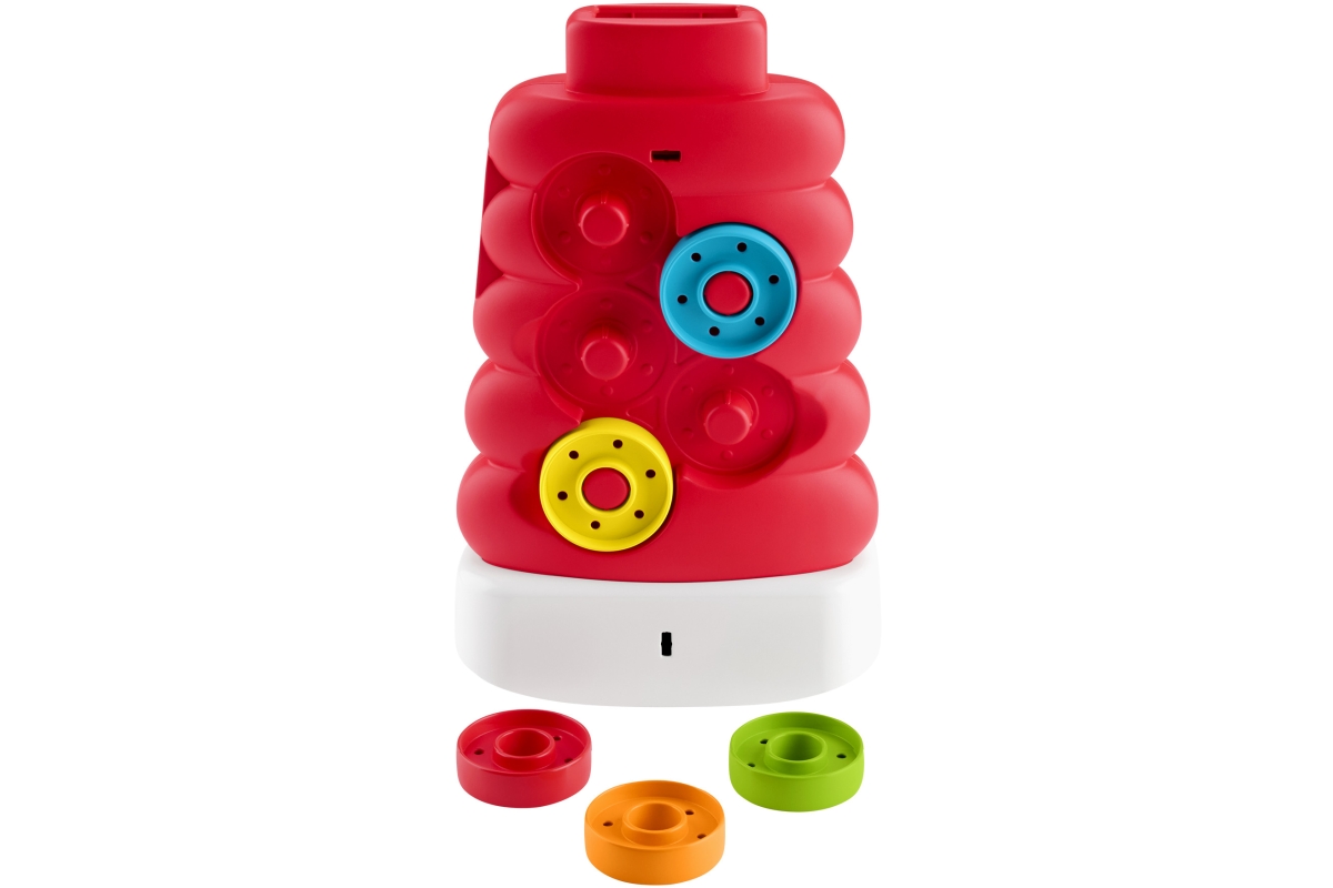 Tahle zábavná věž s kroužky je inspirovaná legendární hračkou Fisher-Price Kroužky na tyči a přináší dětem nový způsob objevování příčiny a následku. ..