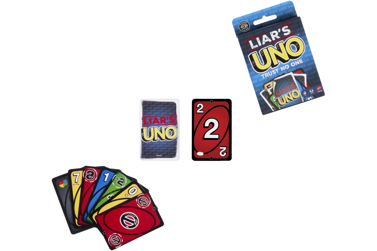 Fanoušci hry UNO si zamilují tuto zábavnou obměnu klasické karetní hry, kde létají lži a vyhrávají ti, kteří umí blafovat! Speciální karta se zahraje lícem dolů a hráč oznámí, co to je. Říká pravdu, nebo klame? Pokud ho někdo vyzve a odhalí lež, musí si vzít kartu. Ale pokud mluvil pravdu, kartu si bere ten, kdo ho vyzval. Udržte kamennou tvář a nezapomeňte při poslední kartě vykřiknout „UNO“! Skvělý dárek pro milovníky karetních her od 7 let. Barvy a vzhled výrobku se mohou lišit.? Doporučený věk 7+