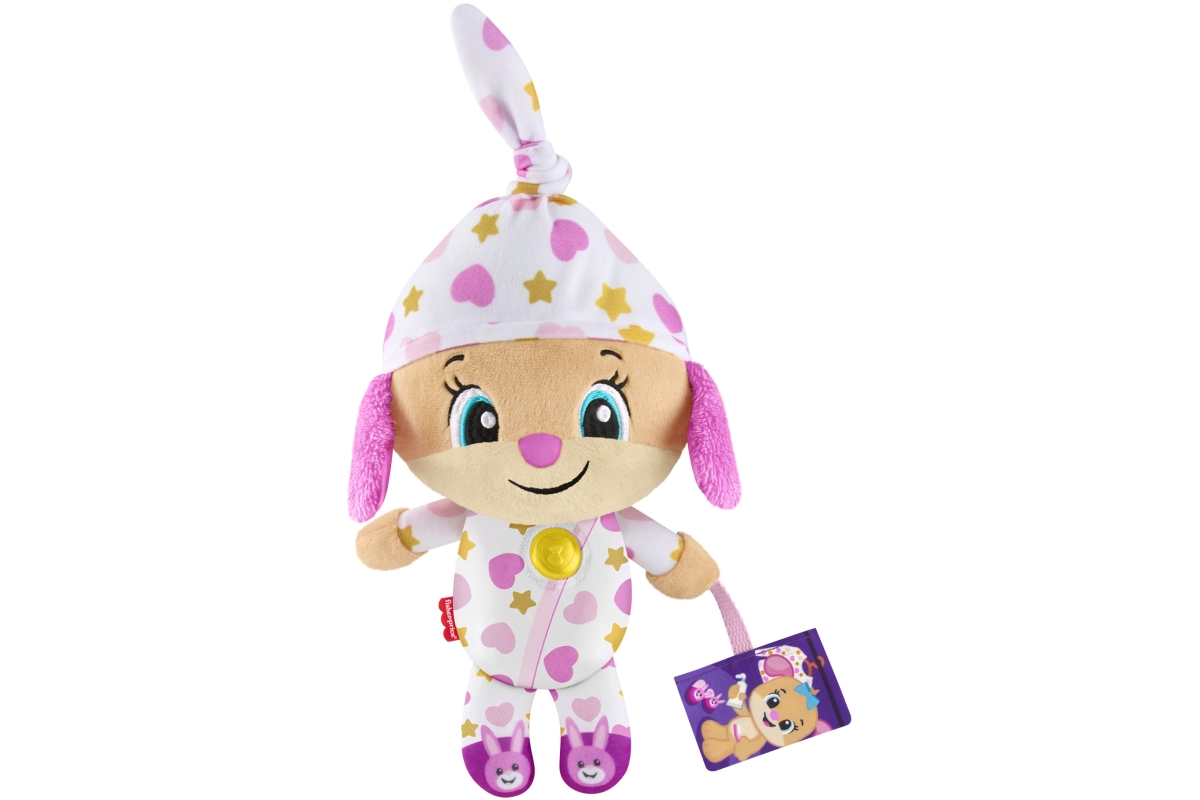 Plyšová hračka Hebká sestřička se zvuky z řady Směj se a Poznávej! od Fisher-Price pomáhá malým dětem se zklidnit pomocí zábavných písniček, zvuků a frází. Má na sobě pyžamko a připojenou „obrázkovou knížku“, a díky písničkám o mazlení, mytí a čištění zoubků pomáhá dětem naladit se na odpočinek. Stačí stisknout srdíčko, které se jemně rozsvítí a spustí uklidňující hudbu, zvuky a fráze. Ideální společník pro klidné usínán. Vyžaduje 2 baterie AA (součástí balení). Barvy a vzhled výrobku se mohou lišit. Věk 2+