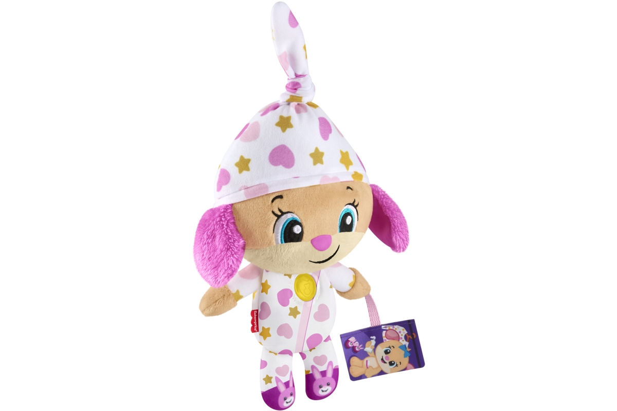 Plyšová hračka Hebká sestřička se zvuky z řady Směj se a Poznávej! od Fisher-Price pomáhá malým dětem se zklidnit pomocí zábavných písniček, zvuků a f..
