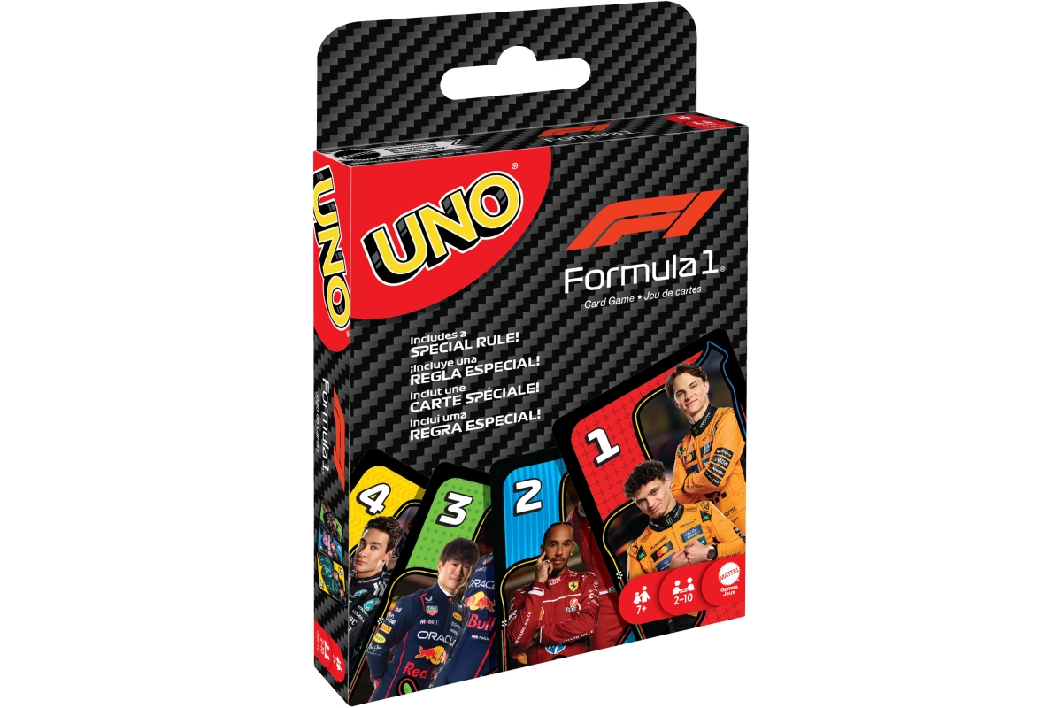 Rozjeďte to s touto speciální edicí hry UNO, která obsahuje motivy ze světa Formule 1! Barvy a vzhled výrobku se mohou lišit. Určeno pro 2-10 hráčů. D..