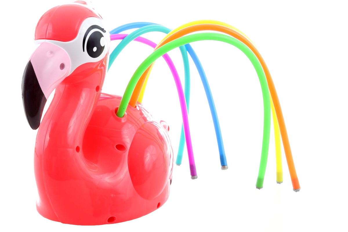 Rozstřikovací plameňák. Napojení na zahradní hadici. Materiál plast. Baleno v otevřené krabici. Rozměry balení cca 22x20x13 cm. Věk 3+..