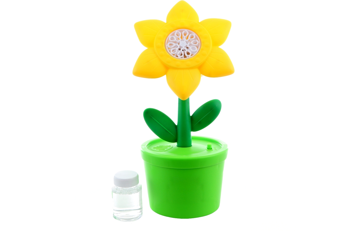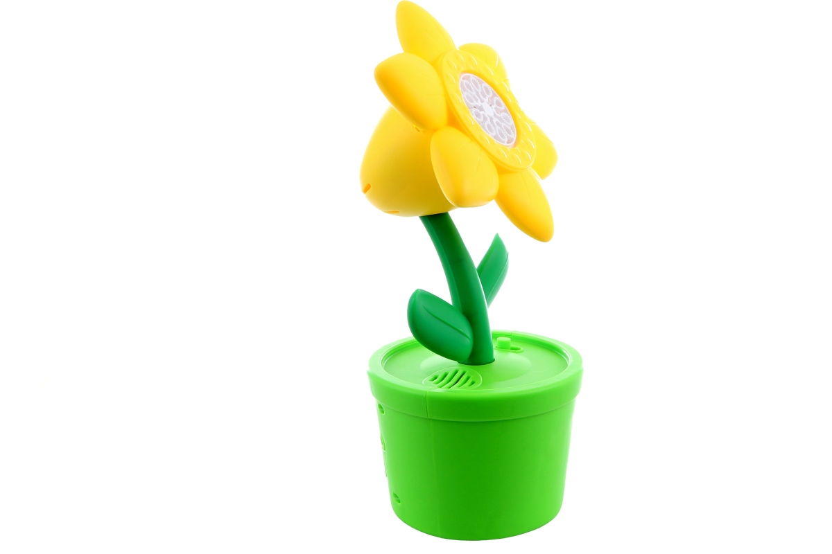 Bublifuk na baterie s motivem květiny. Napájení na 3xAA baterie - nejsou součástí balení. Návod: vložte baterie, nainstalujet náplň a zapněte tlačítkem na květináči. Materiál plast. Baleno v krabici. Rozměry balení 28x12,5x12,5 cm. Věk 3+