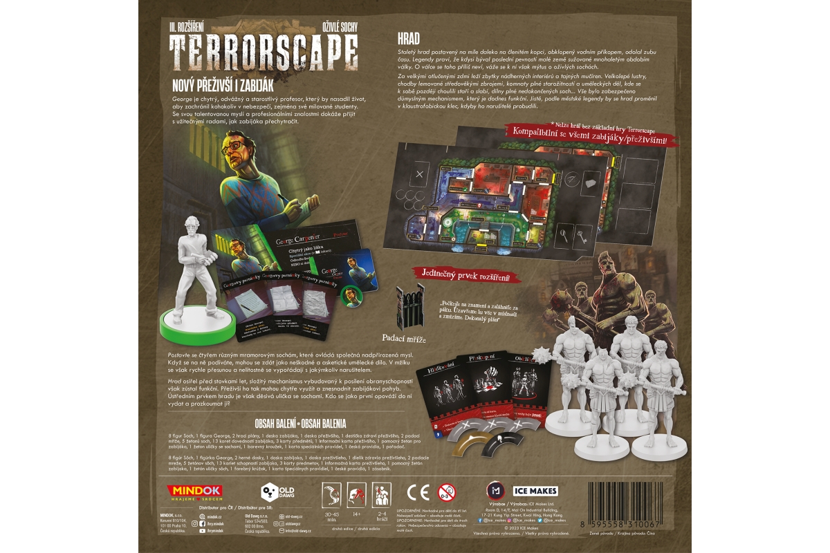 V Terrorscape: Oživlé sochy se hrůza stává kolektivní, když jako zabiják ovládáte čtyři kamenné Sochy, z nichž jedna je vždy hlavní hrozbou. Unikněte ze starého hradu, použijte Ovládací páku k instalaci padacích mříží, a hrajte za nového přeživšího George Caramela, který získává strategické poznámky. Nové mechanismy a nevídaná síla zabijáka přinášejí dosud největší výzvu pro přežití. Určeno pro 2-4 hráče. Věk 14+