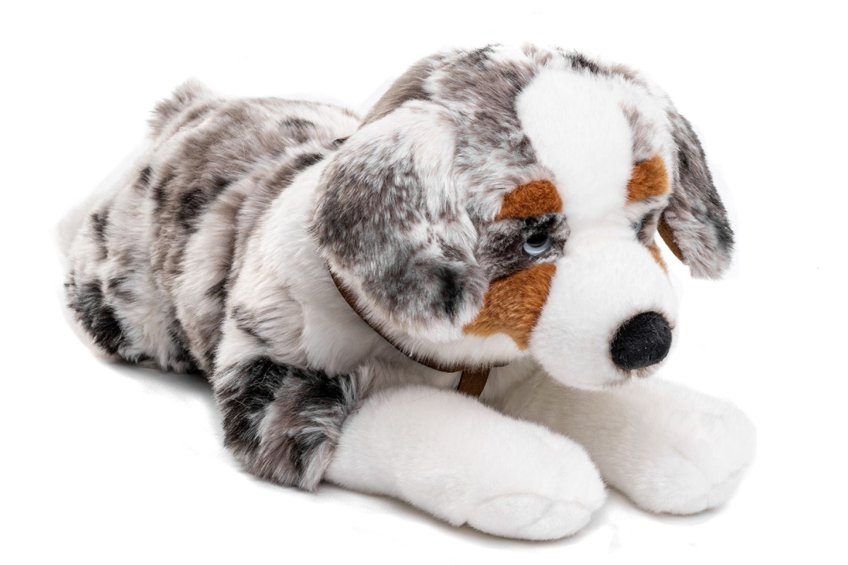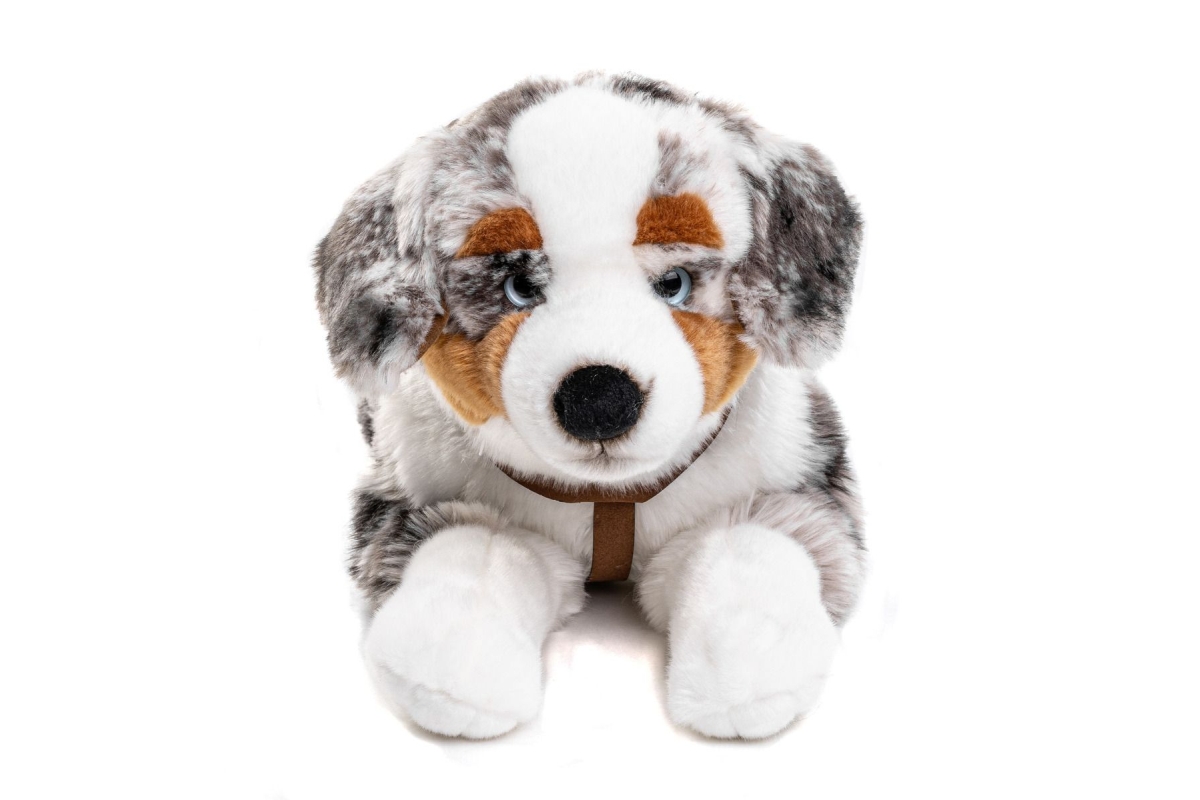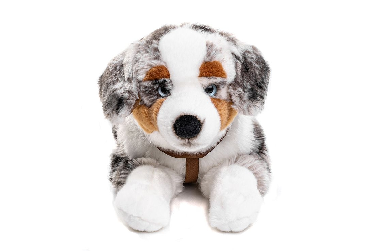Plyšový Australský ovčák s kšíry. Velikost cca 57 x 25,5 x 19 cm. Věk 0+..