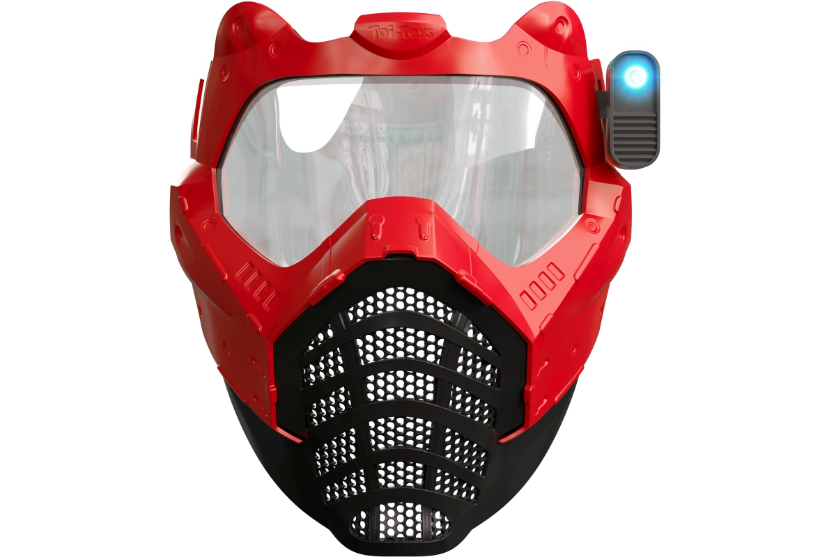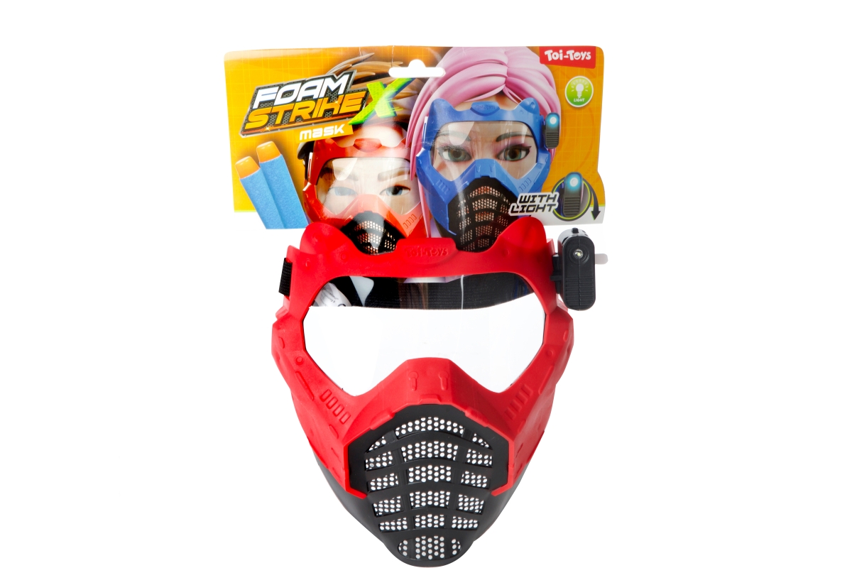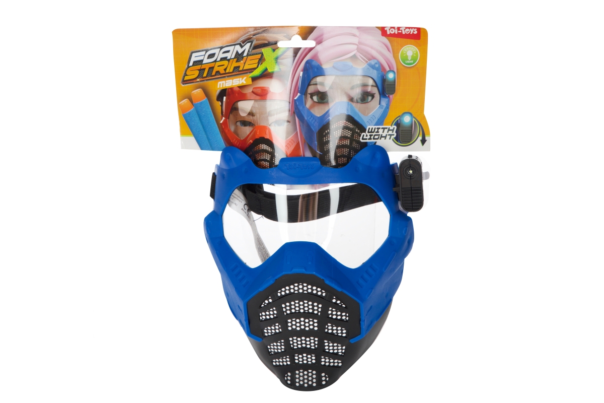Ochranná maska na obličej. Materiál plast. Vzadu na gumičku. Maska obsahuje světýlko - napájení na 2xknoflíkovou baterii (jsou součástí balení). 2 bar..