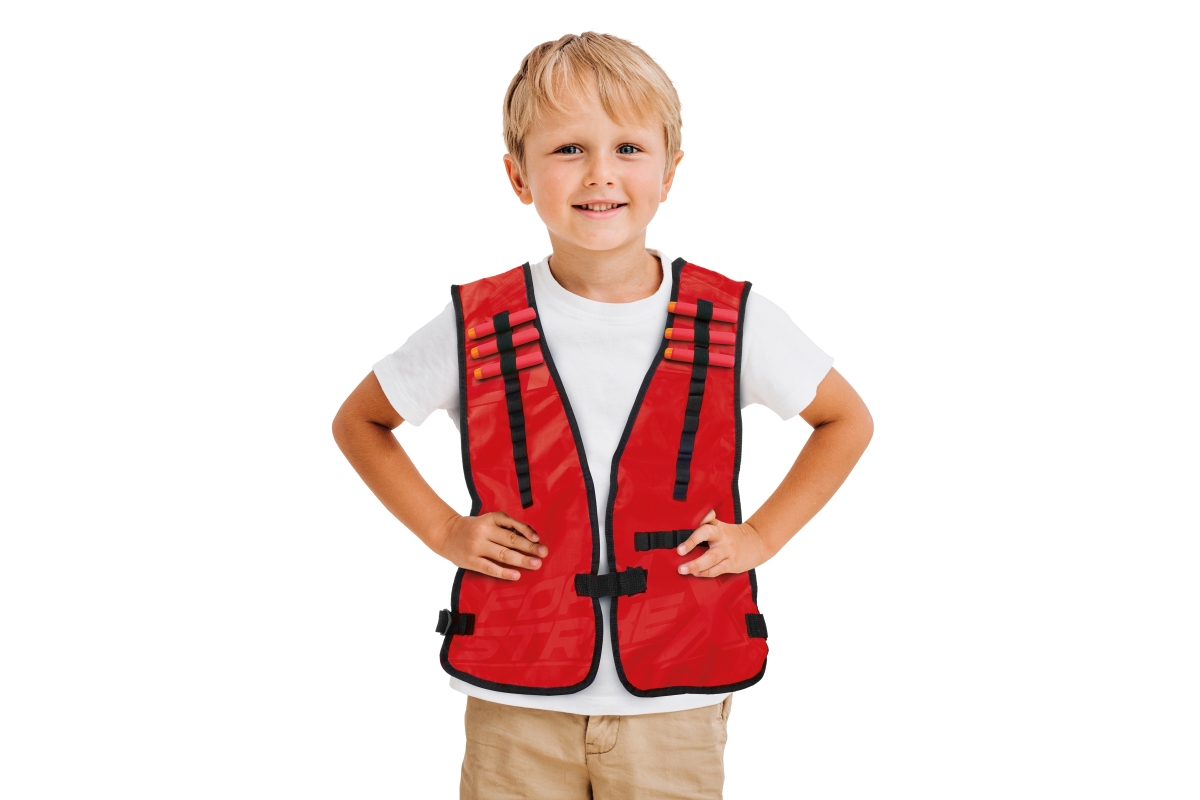 Vesta se 6 pěnovými náboji. Zapínání na suchý zip. Materiál polyester. Rozměry vesty 45x37 cm. Věk 3+..