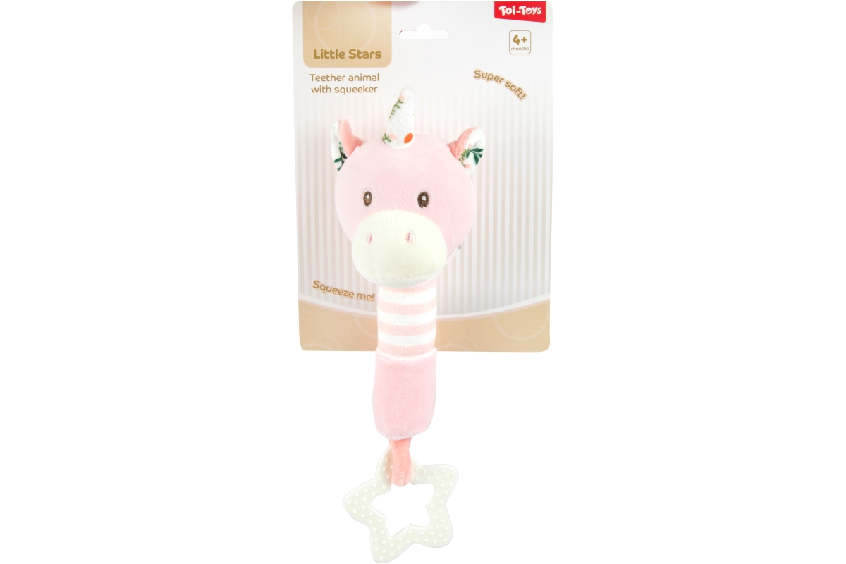 Plyšová hračka pro nejmenší děti s motivem zvířátek v pastelových barvách. Tělíčko zvířátka šustí a na konci se nachází kousátko. 3 druhy - dodáváme d..
