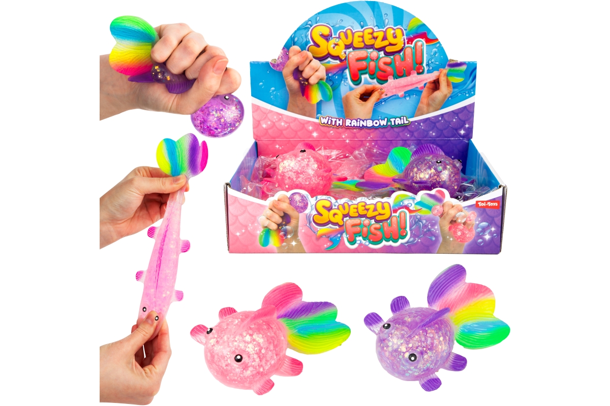 Mačkací rybka se třpytkami. Baleno v sáčku. Rozměry rybky 12x7x4,5 cm. Více barev - dodáváme dle skladové dostupnosti. Věk 3+..