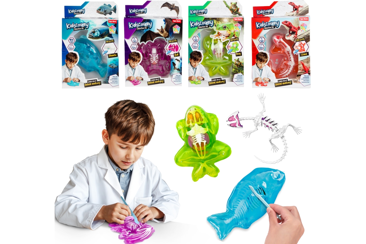 Vykopávková sada - sliz. Balení obsahuje sliz o hmotnosti 190g, kostru zvířete uvnitř slizu a plastovou pomůcku pro vyndání kostry. Baleno v krabici. ..