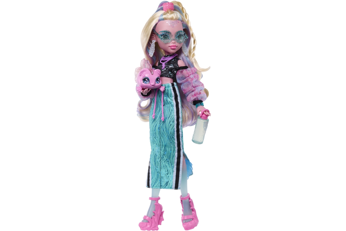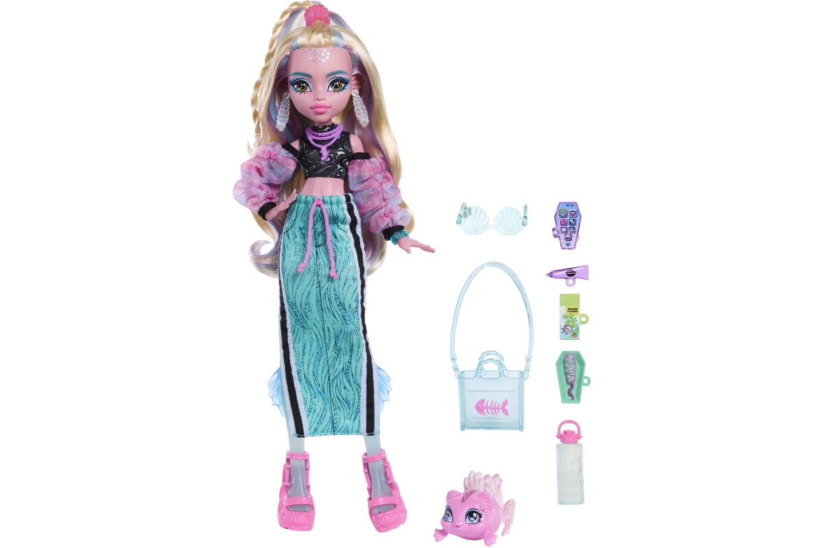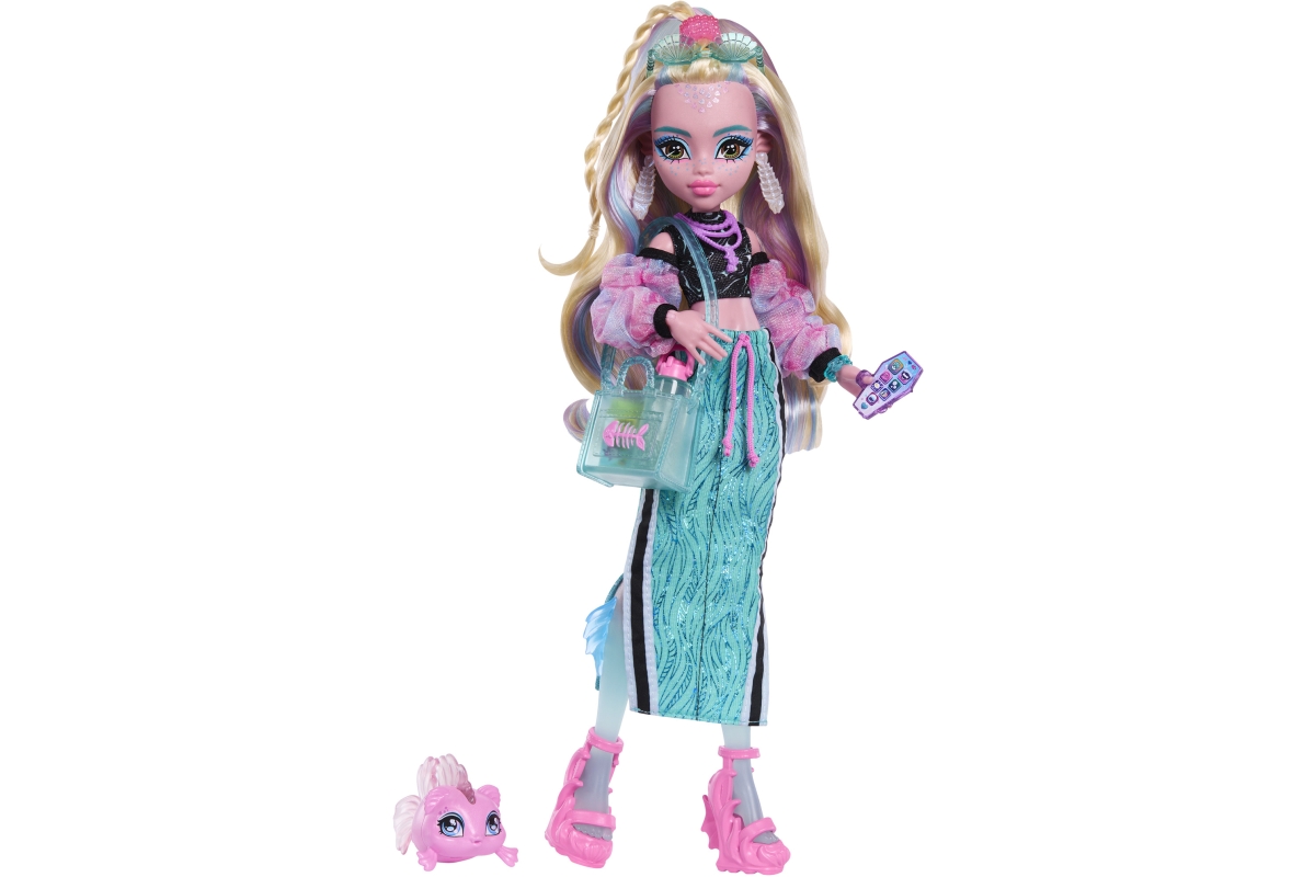 Panenka Lagoona Blue vypadá fantasticky v novém outfitu, který je stejně trendy jako stylový! Kromě nového účesu a vrstveného oblečení plného detailů má také svého mazlíčka rybičku jménem Neptuna a sedm doplňků, jako jsou svačina, nápoj, počítač, sluneční brýle, kabelka a další. Panenka neumí samostatně stát. Barvy a vzhled výrobku se mohou lišit. Doporučený věk 4+