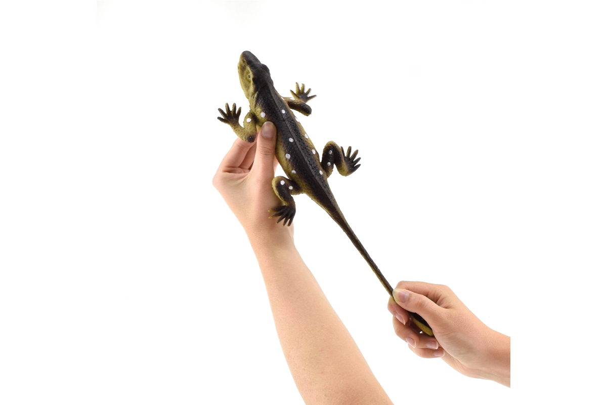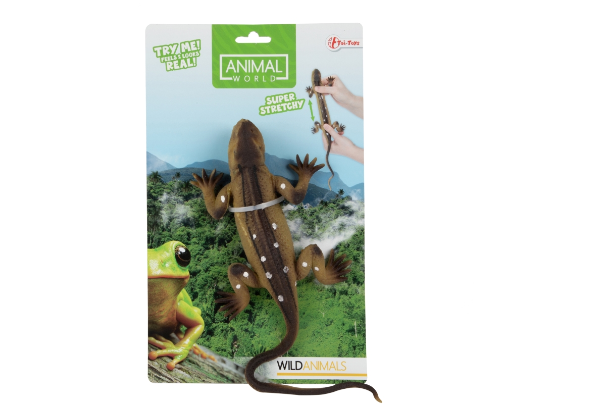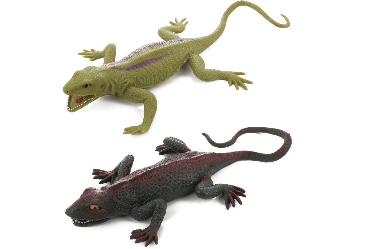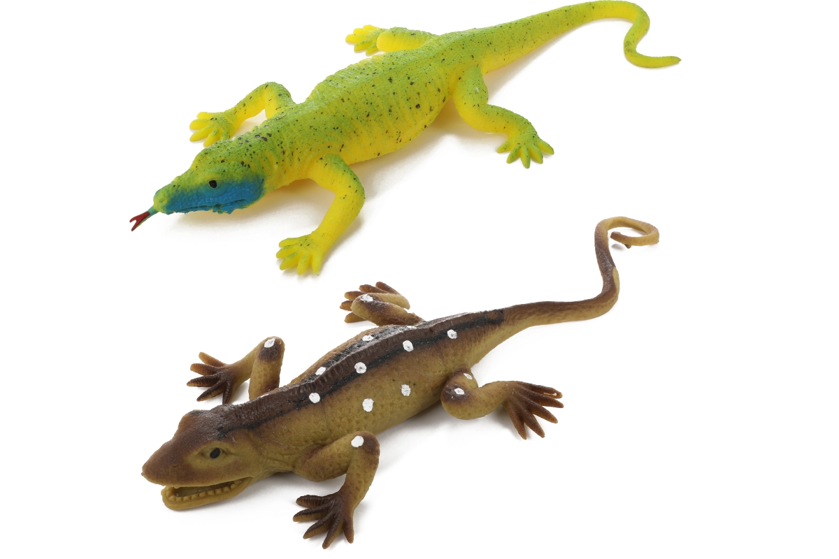 Natahovací ještěrka. Materiál plast. Uvnitř bříška ještěrky jsou kuličky. Baleno na kartě. Rozměry balení 29x17,5x2 cm. Rozměry žáby 24x12x3 cm. 4 bar..