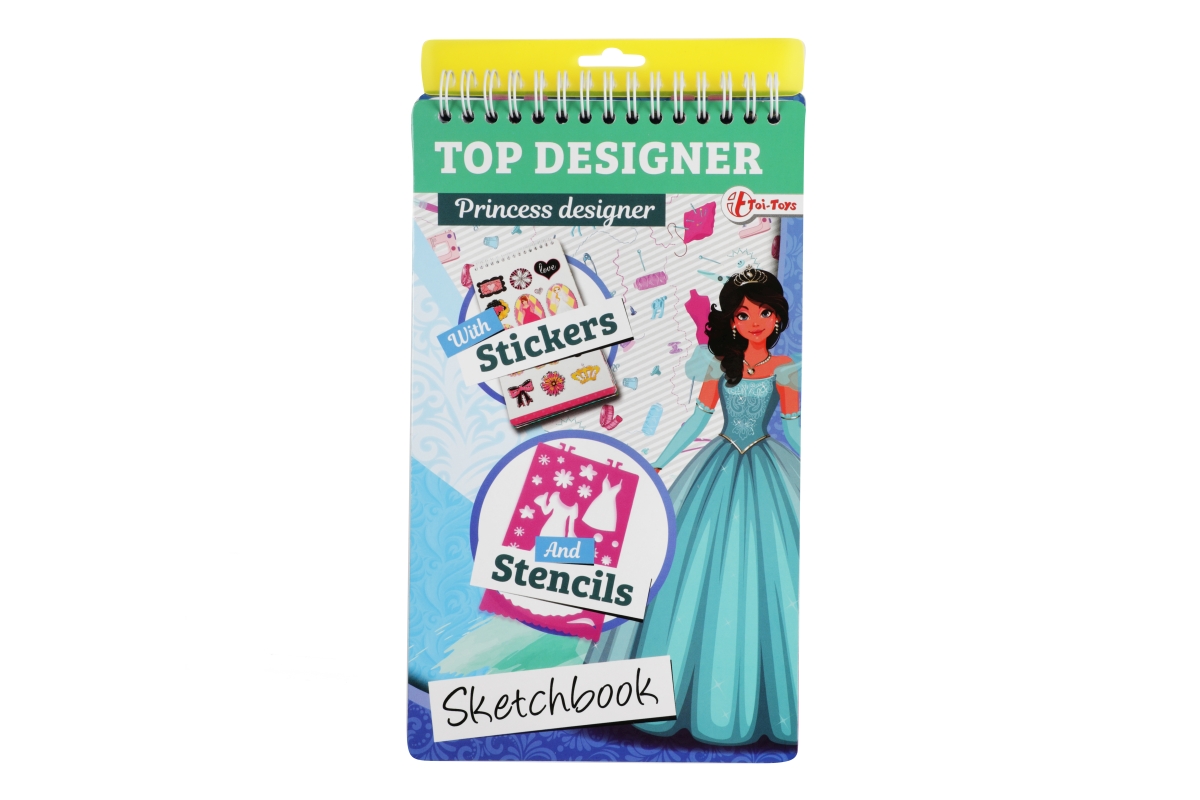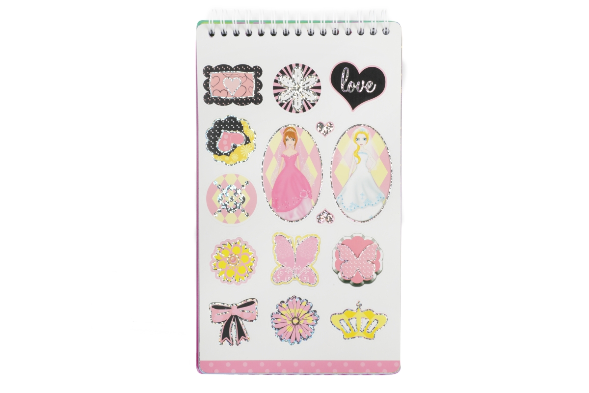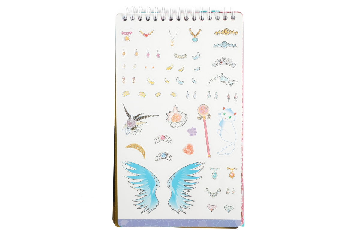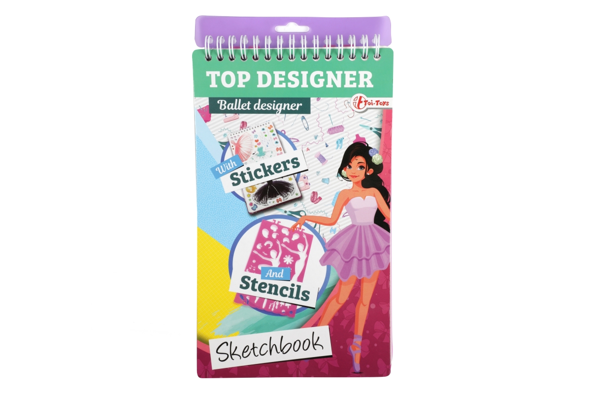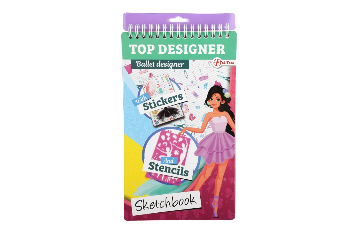 Skicář pro malé návrhářky. Skicář má kroužkovou vazbu a obsahuje 2 mazací strany pro stíratelný fix, 4 archy se šablonami a 30 archů se základní posta..