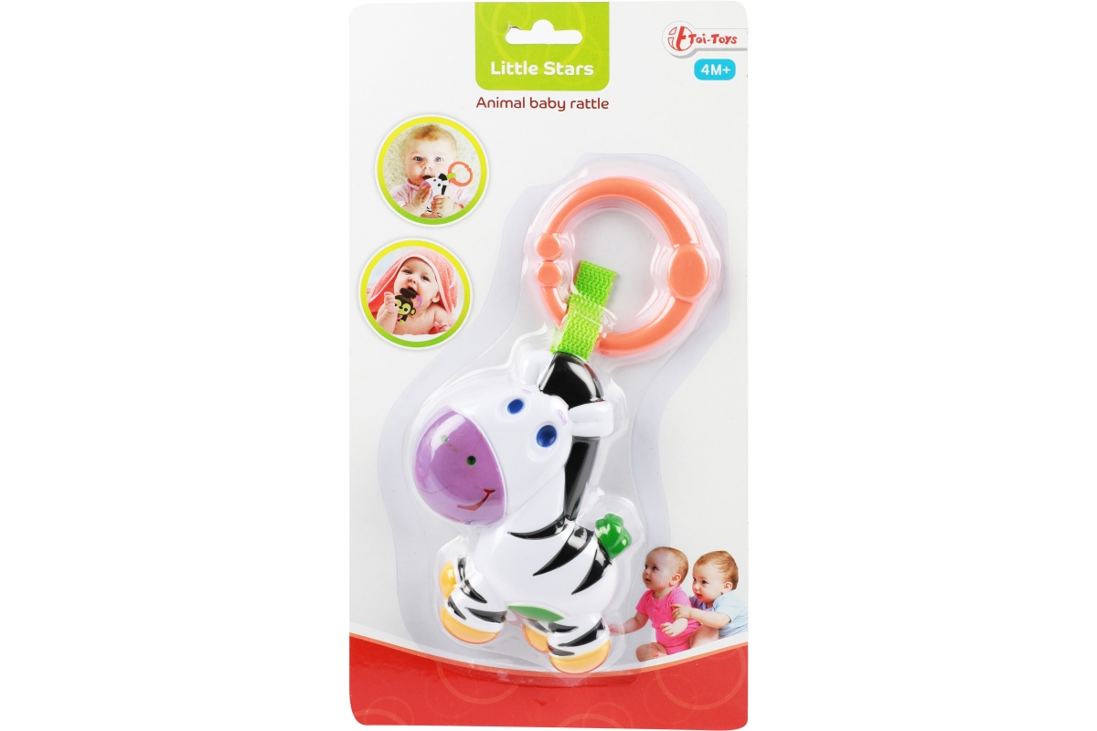 Chrastítko pro nejmenší děti s motivem zvířátek. Materiál plast. Baleno na kartě. Rozměry balení 28x15x3 cm. Věk 4m+..