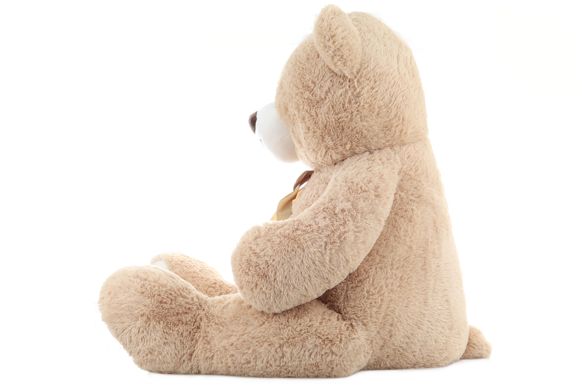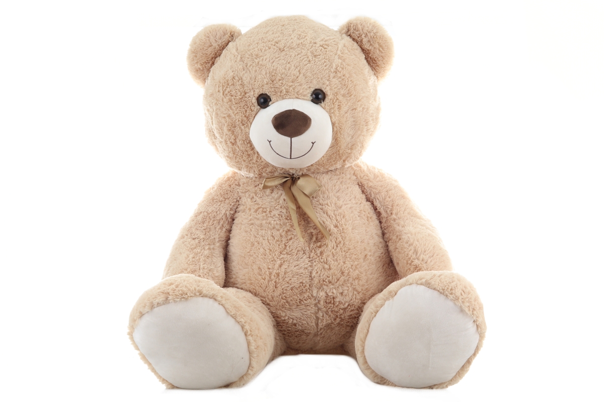 Plyšový medvěd s mašlí. Rozměry 130x80x38 cm. Věk 0+..