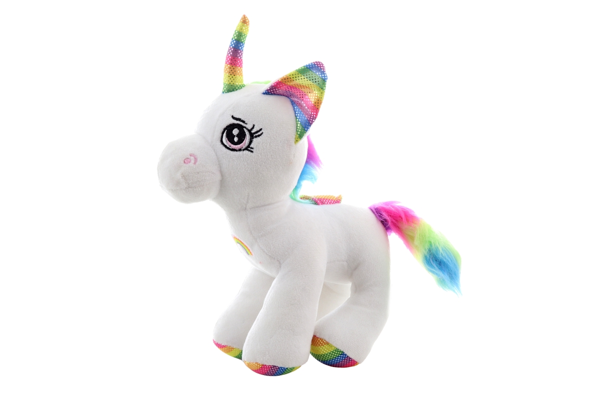 Plyšový veselý jednorožec. Rozměry 12x20x15 cm. Věk 0+..