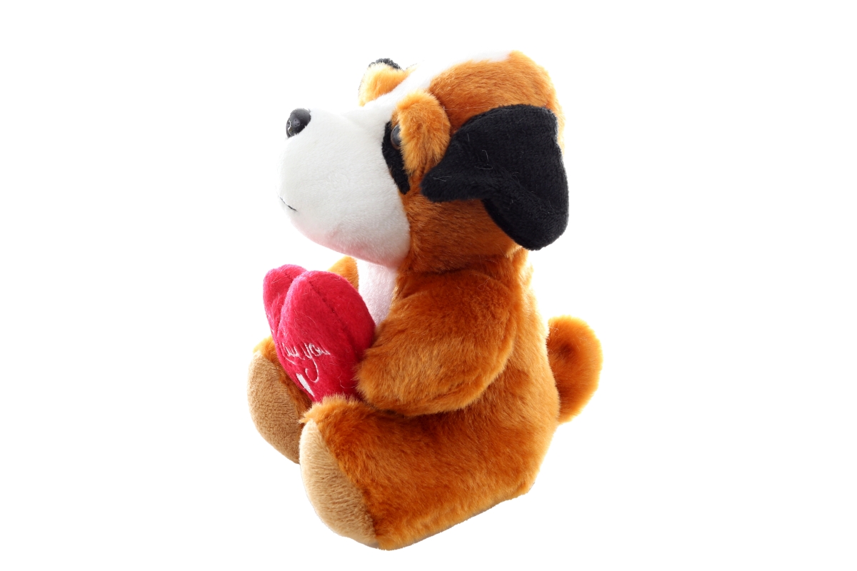 Plyšový pejsek se srdíčkem. Rozměry 10x14x10 cm. Věk 0+..