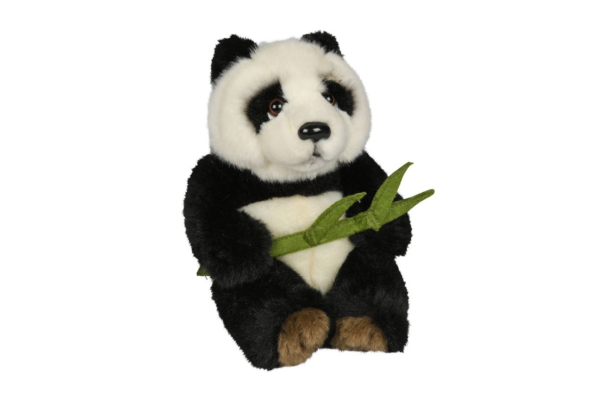Plyšová panda s listem o velikosti cca 18 x 11 cm. Věk 0+..