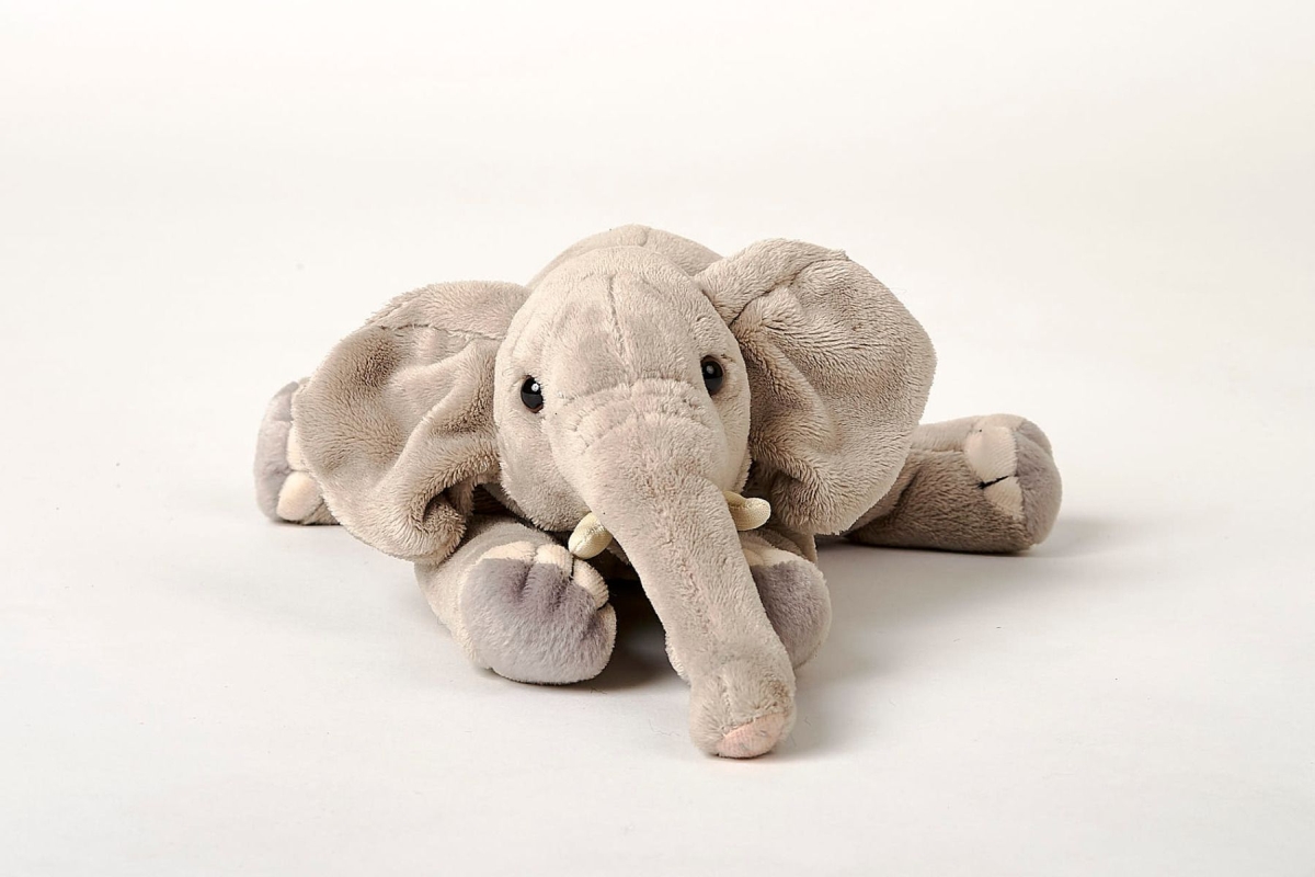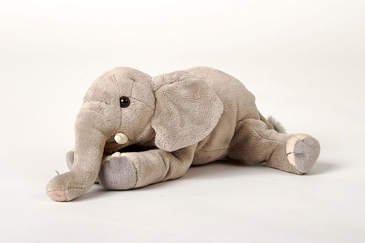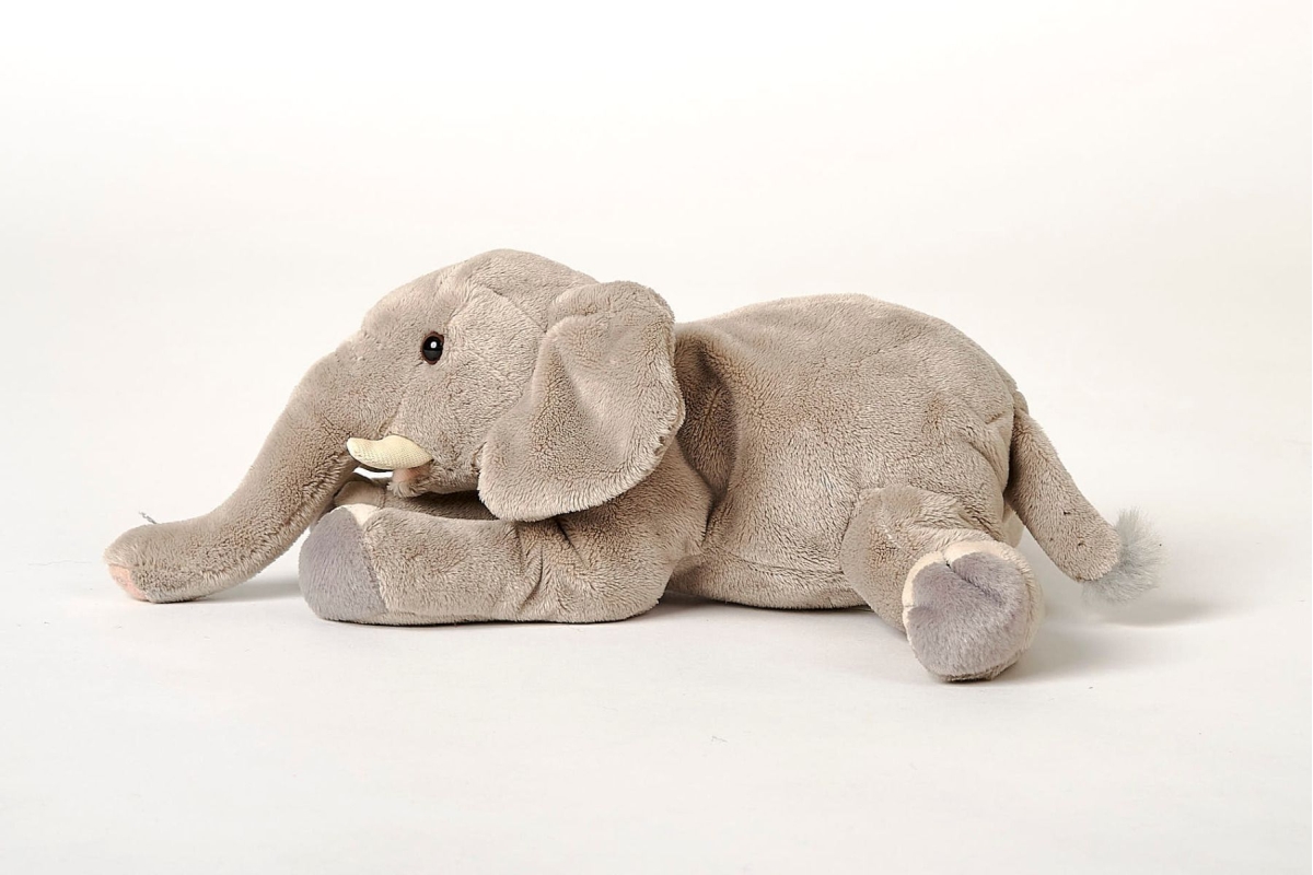 Plyšový slon o velikosti cca 29 x 9 x 9 cm. Věk 0+..