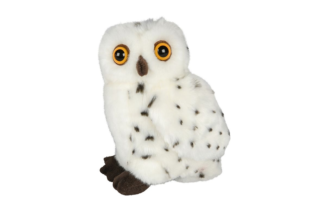 Plyšová sova sněžná o velikosti cca 13,5 x 18 cm. Věk 0+..