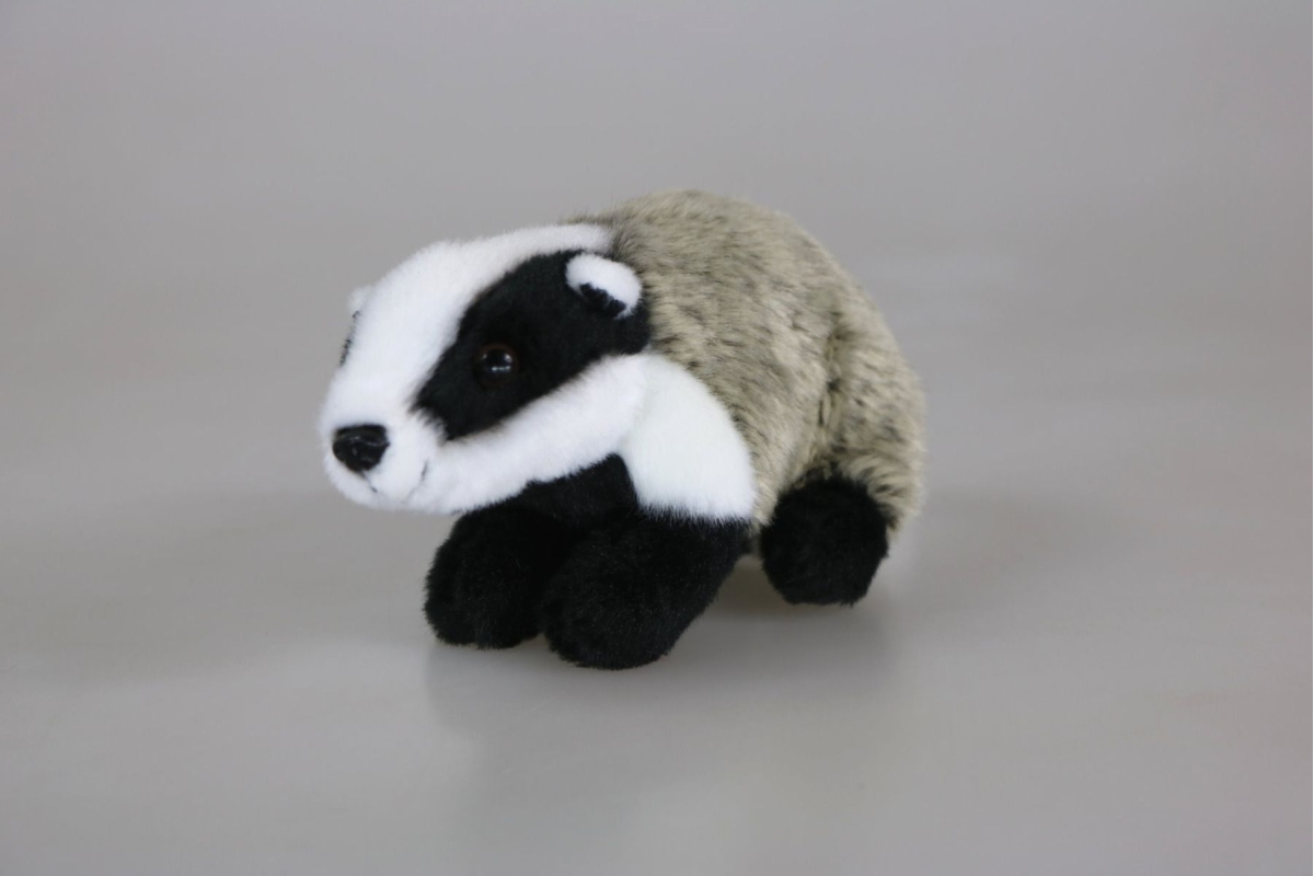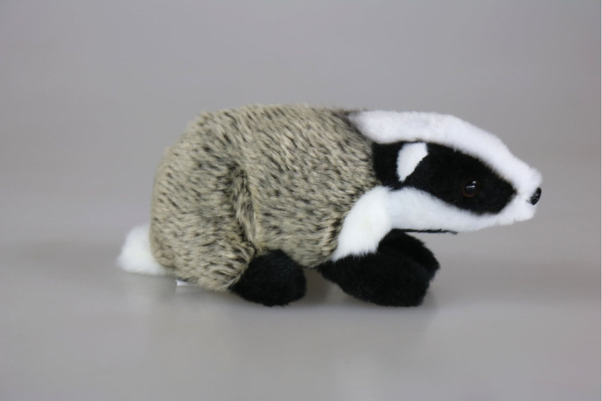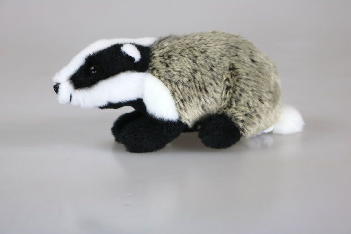 Plyšový jezevec o velikosti cca 18 x 8 x 9,5 cm. Věk 0+..