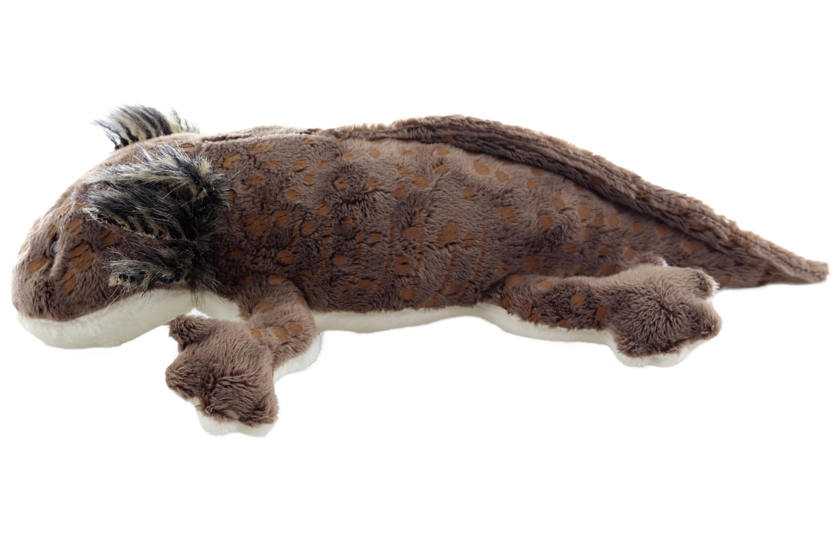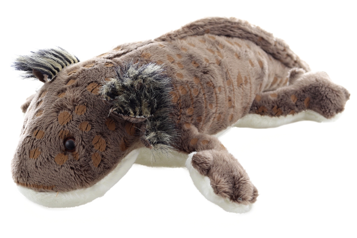 Plyšový Axolotl hnědý o rozměrech 28x18x7 cm. Věk 0+..