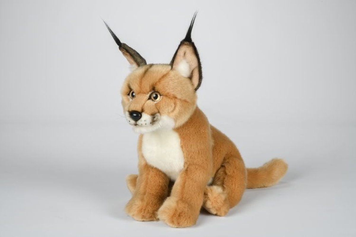 Plyšový karakal o velikosti cca 15 x 24 x 25 cm (bez ocasu). Délka ocasu cca 14 cm. Věk 0+..