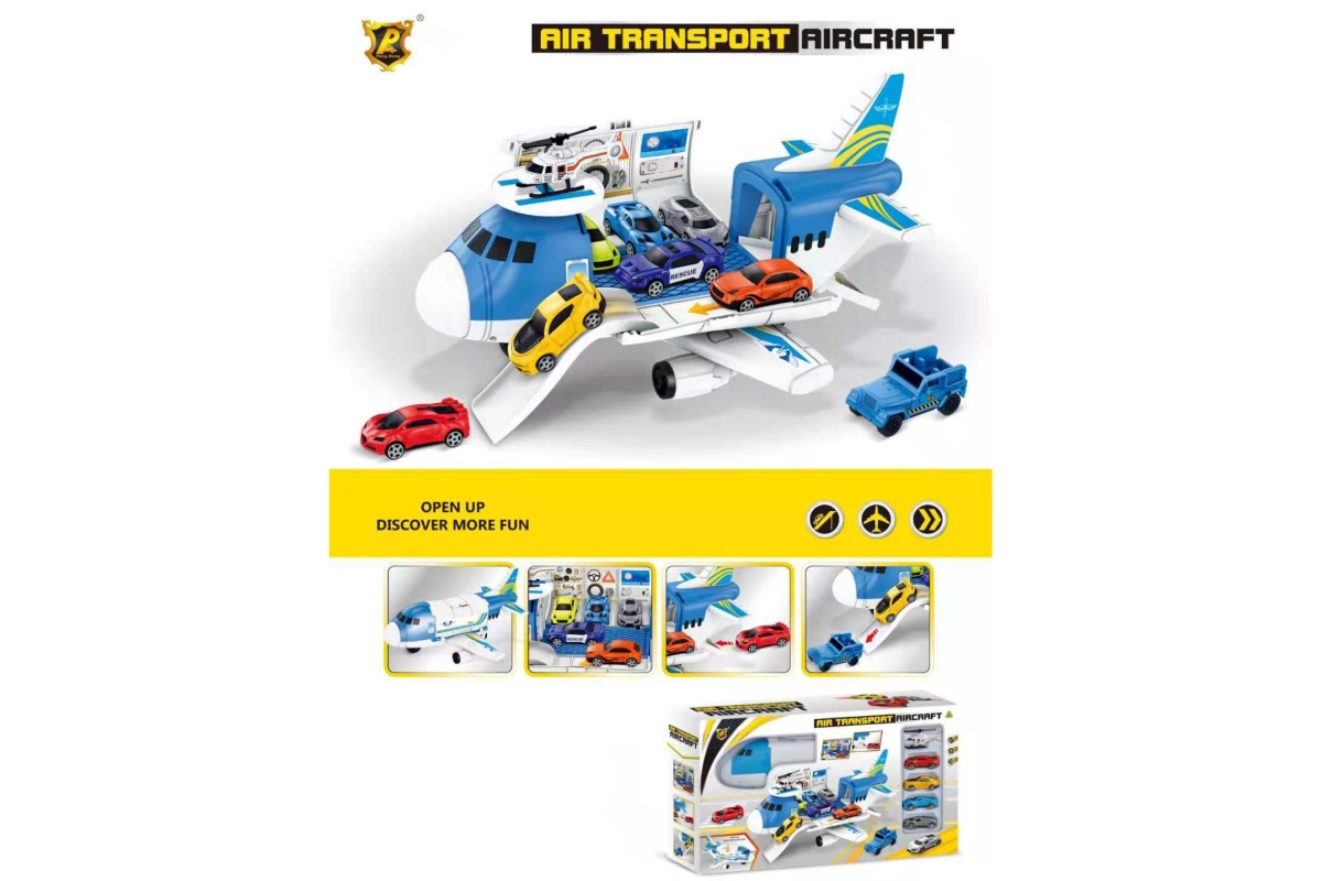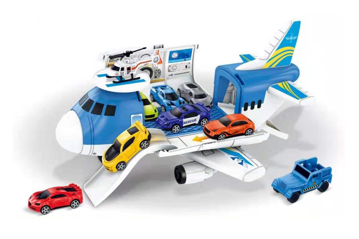 Plastové rozkládací letadlo s autíčky. Letadlo lze rozložit na garáž pro autíčka. Součástí jsou 4 plastová autíčka a 1 helikoptéra. Rozměry balení cca..