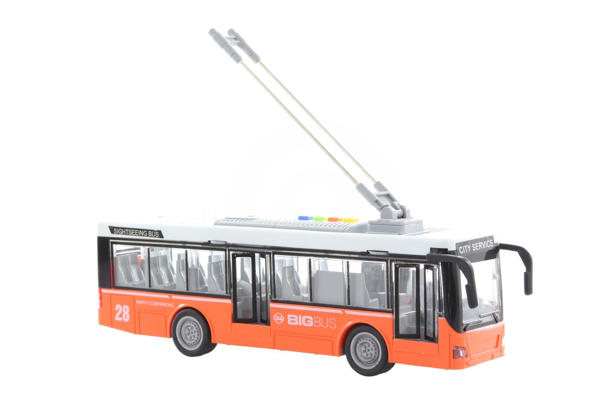 Plastový trolejbus na baterie. Trolejbus vydává zvuky a svítí. Rozměr hračky cca 27 x 10 x 6 cm. Napájení na 3x AG13/LR44 baterie které jsou součástí...