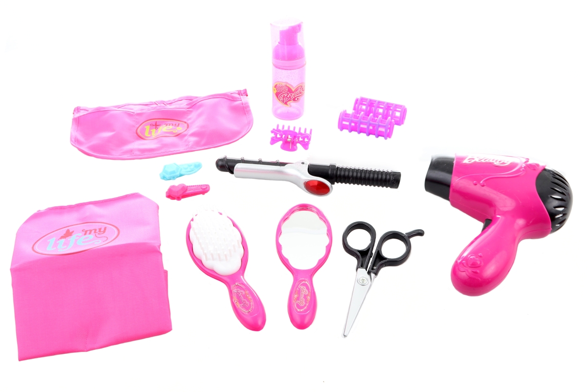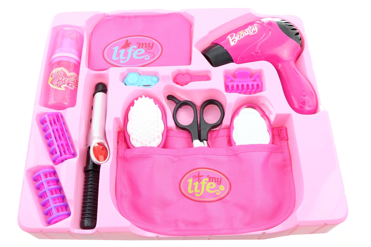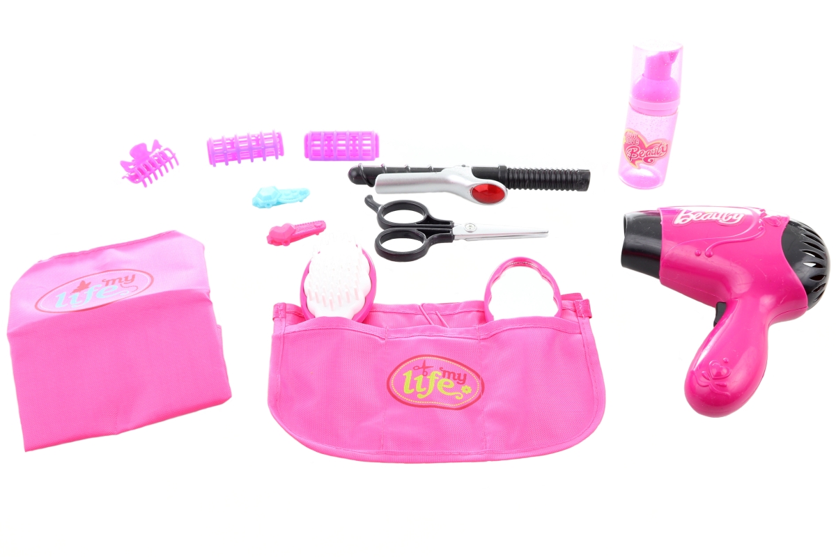 Tato sada pro malé kadeřnice obsahuje fén na baterie, žehličku na vlasy, nůžky hřeben, natáčky, kapsář a mnoho dalších doplňků. Napájení fénu na 1 AA ..