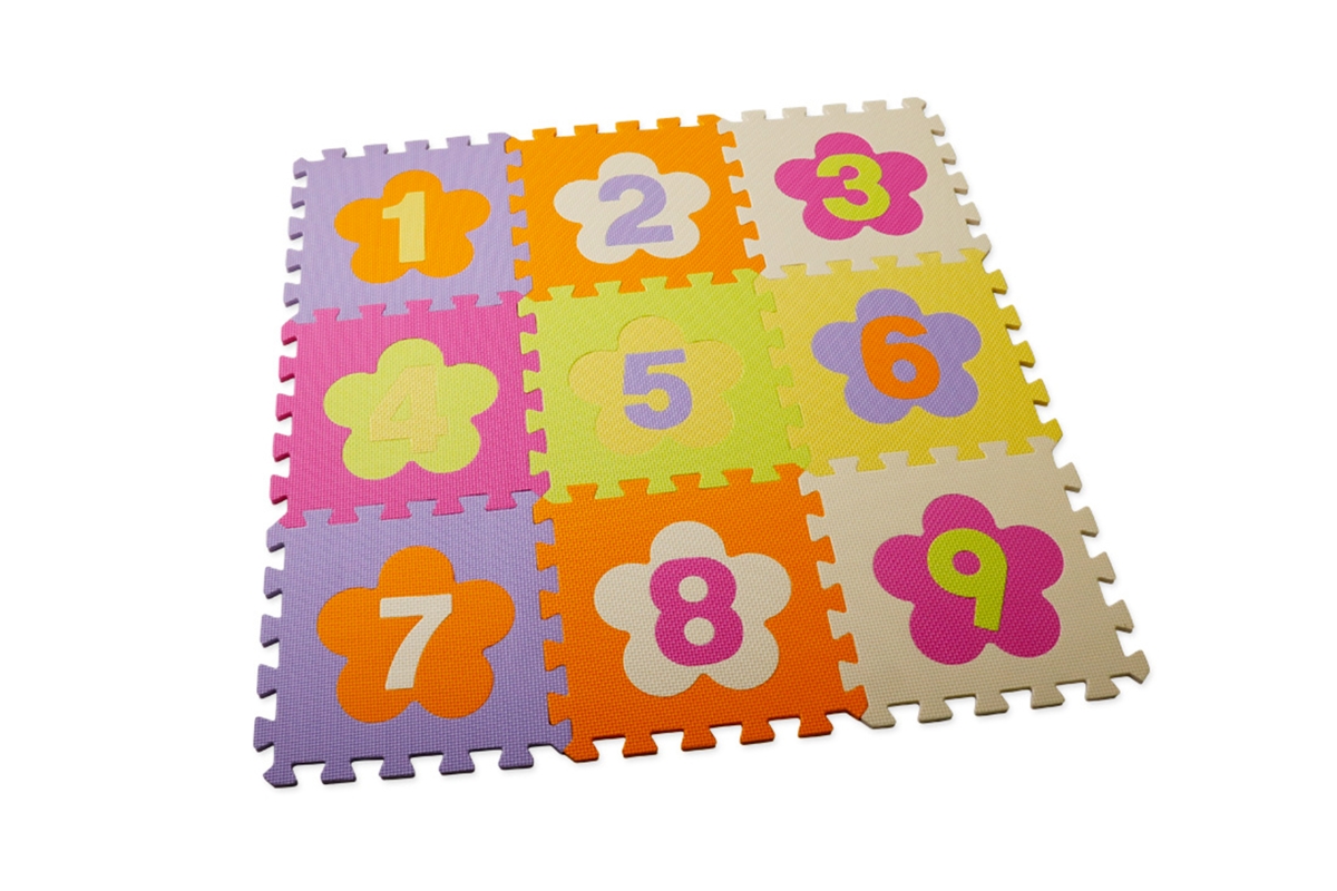 Pěnové puzzle s čísly. Obsahuje 9 dílků. Rozměr jednoho dílku 30 x 30 cm. Rozměry balení cca 30 x 30 x 7,5 cm. Věk 3+..
