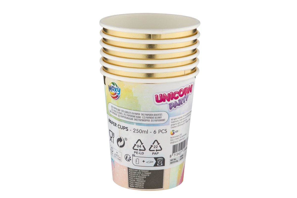 Papírové kelímky s motivem jednorožce. Baleno po 6i kusech. Objem 250ml. Výrobek není hračka...